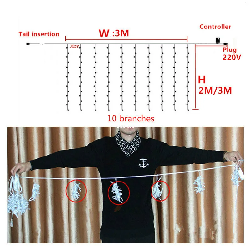 3x2 3x3 6x3 м светодиодный занавес с водопадом, метеоритный дождь...