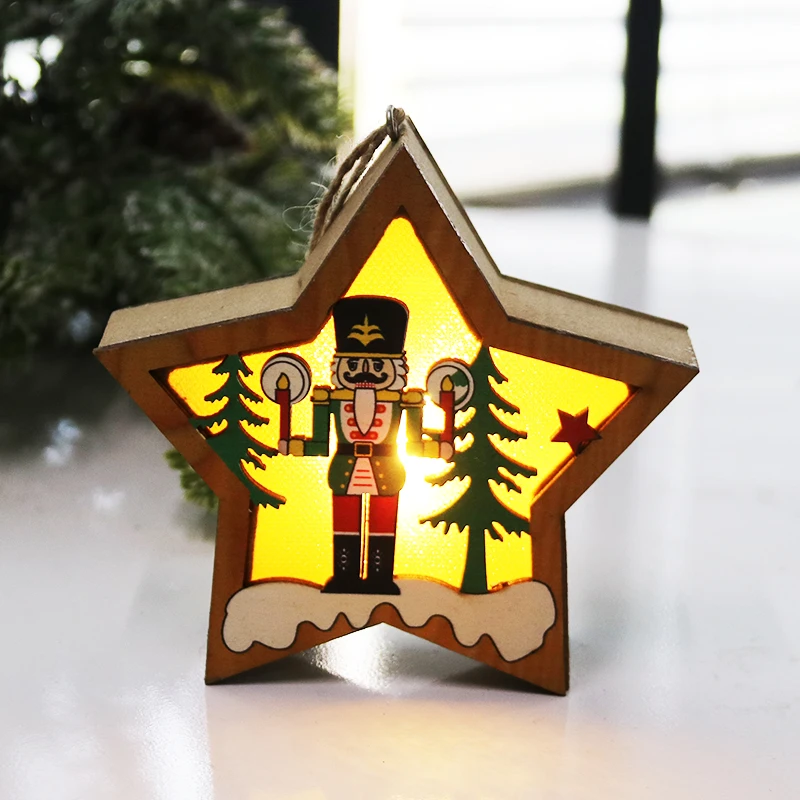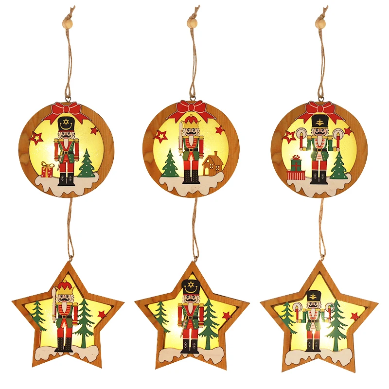 Светодиодный светильник Рождественский деревянный Щелкунчик звезда кулон Navidad Рождественская елка украшение висячие украшения для рождества Новогоднего декора