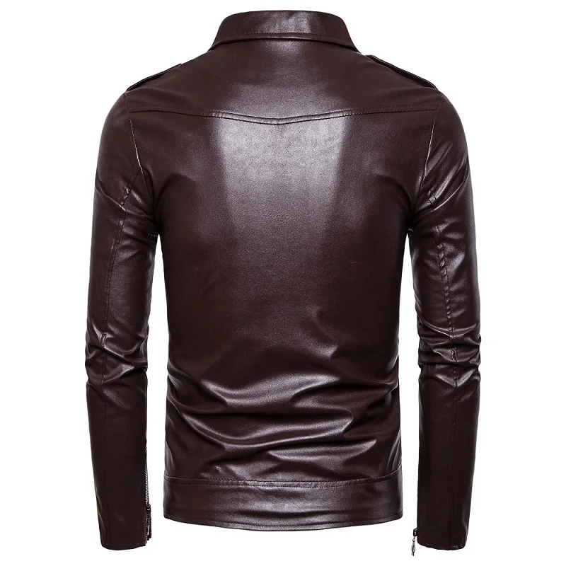 Куртка мужская из искусственной кожи, приталенная, с отложным ворот...
