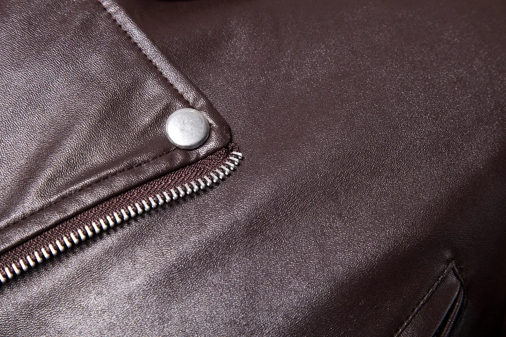 Мужская однотонная кожаная куртка с отложным воротником, с длинным рукавом