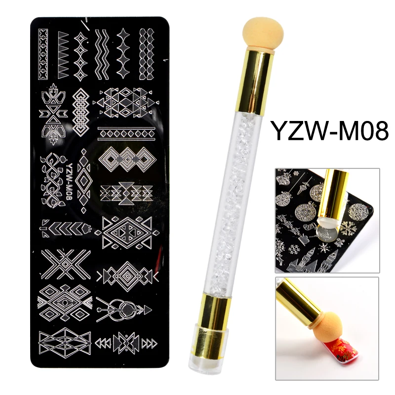 1 шт. 10*4 см шаблоны тиснения ногтей + 1 шт. ручкаКак использовать:1) Снимите защитную пленку2) Нанесите лак для ногтей на желаемый дизайн3) удалите излишки лака для ногтей скребком под углом 45 °4) Возьмите дизайн с помощью стемпера с помощью подвижного движения5) Нанесите штамп на ваш ноготь с помощью подвижного движения6) Нанесите верхнее пальто для более длительного результатаРазмер: 12x6 см