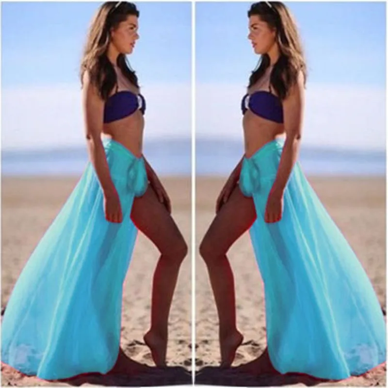 Сексуальная Женская пляжная шифоновая Макси-юбка, Пляжная длинная ю...