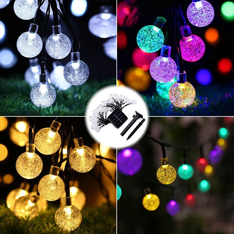 Новый 50 светодиодный 10 м солнечный светильник хрустальный шар светодиодный струнные светильники, лампа с солнечной батареей Мощный светодиодный гирлянда сказочные огни Сад Рождественский Декор Прямая поставка