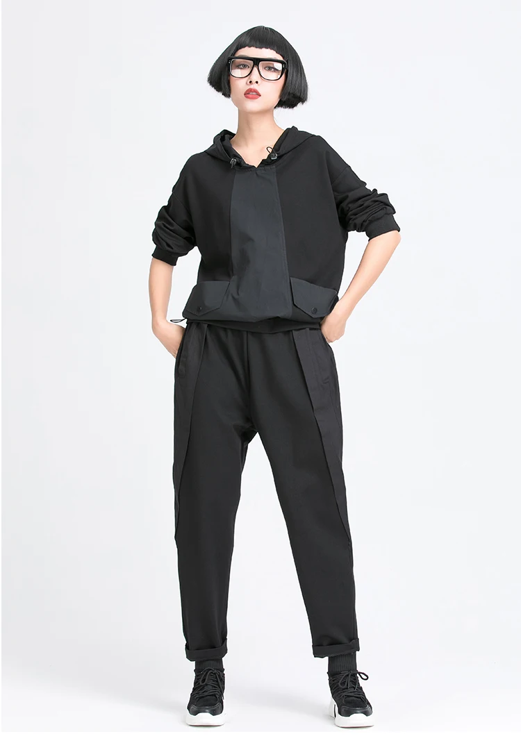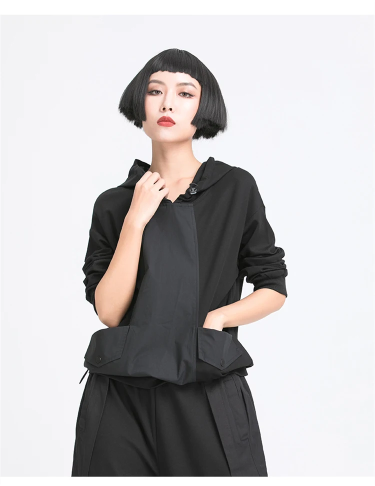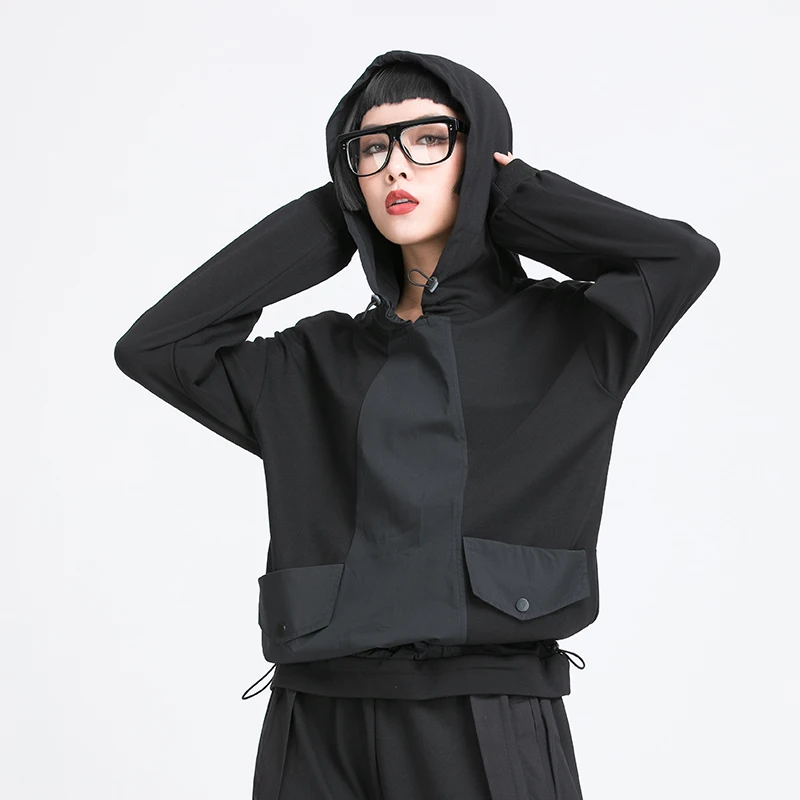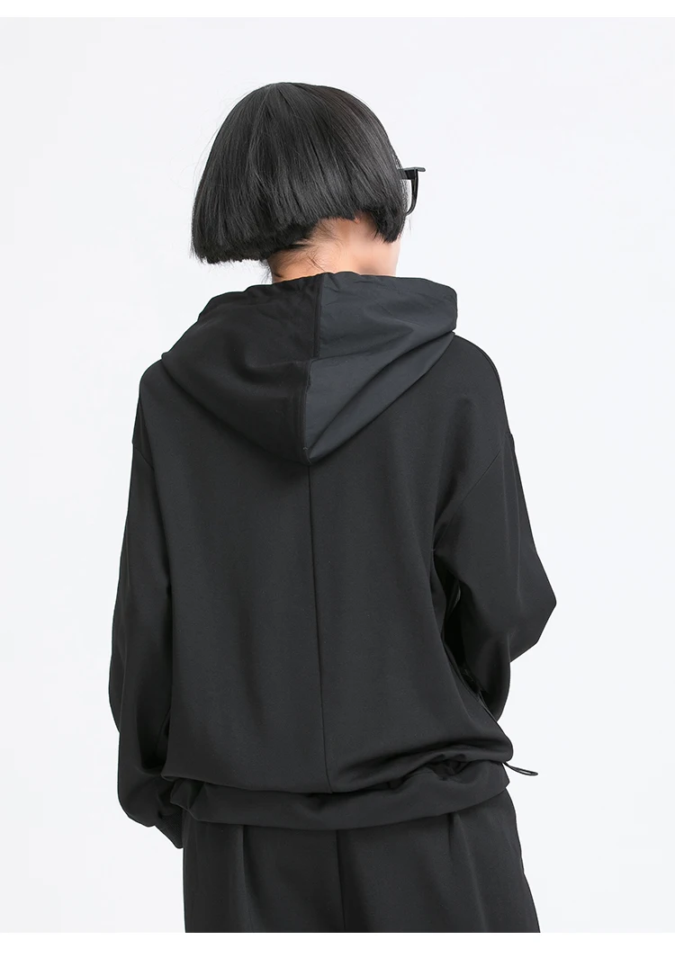 Толстовка Женская, черная, с капюшоном, с длинным рукавом, в стиле пэчворк, весна-осень, 2021