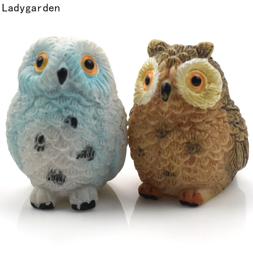 2 шт. милые фигурки Совы животные каучуковые миниатюрные фигурки для изготовления бонсай горшки домашнее сказочное садовое украшение декоративные статуэтки