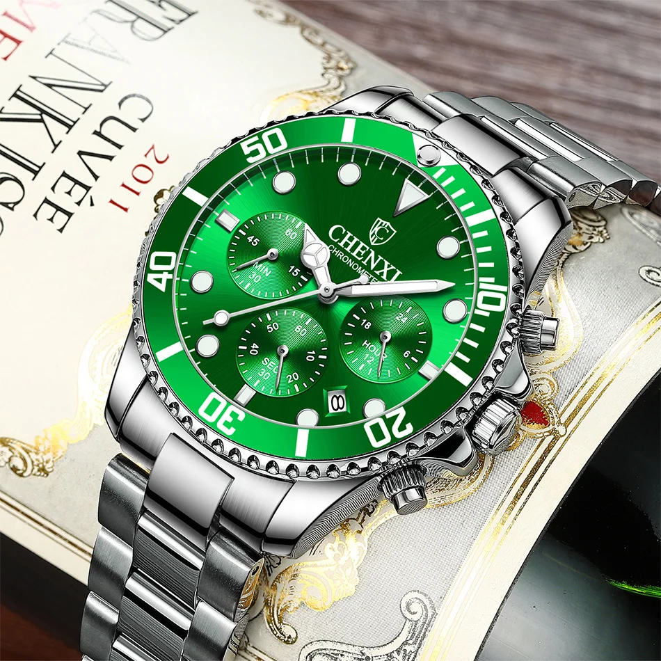 Мужские наручные часы, зеленые, водонепроницаемые, в деловом стиле, классический дизайн, в подарок