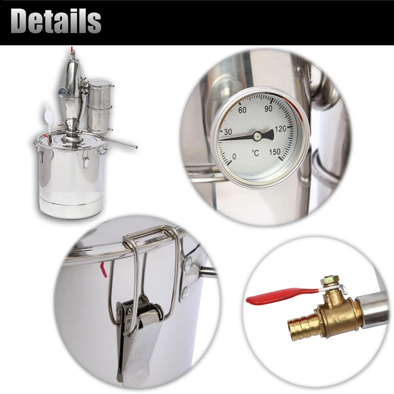 {Infomodule}Особенности-Нержавеющий спиртовой дистиллятор, домашний набор самогона, бойлер для виноделия-Пищевая нержавеющая сталь 304, более здоровая и прочная-Большое пространство для очистки, более идеальный эффект-Поддерживаются методы отопления угля, природного газа и дров-Контейнер можно использовать как резервуар для брожения-Использовать четырехкратную технологию охлажденияХарактеристики-Емкость: 20 л-Материал: нержавеющая сталь 304-Внешний диаметр: 28 см-Высота: 30 см-Входное Количество: 5 кг риса-Количество на выходе: 3 кг для содержания спирта 50 ° или 5 кг для 30 °-Время отпаривания вина: 1-2 часаПримечание:Очистите и высушите дистиллятор после использования.Посылка1x20 л дистиллятор из нержавеющей стали для домашнего пивоварения (полностью аксессуары, как показано на фотографии)Аксессуары:1 х 100 мл Градуированный Цилиндр1 погружной насос3 спиртометра1 фильтр-мешок1 обратный клапан1 Силиконовая заглушка3x Силиконовая трубка1x решетчатый кронштейн
