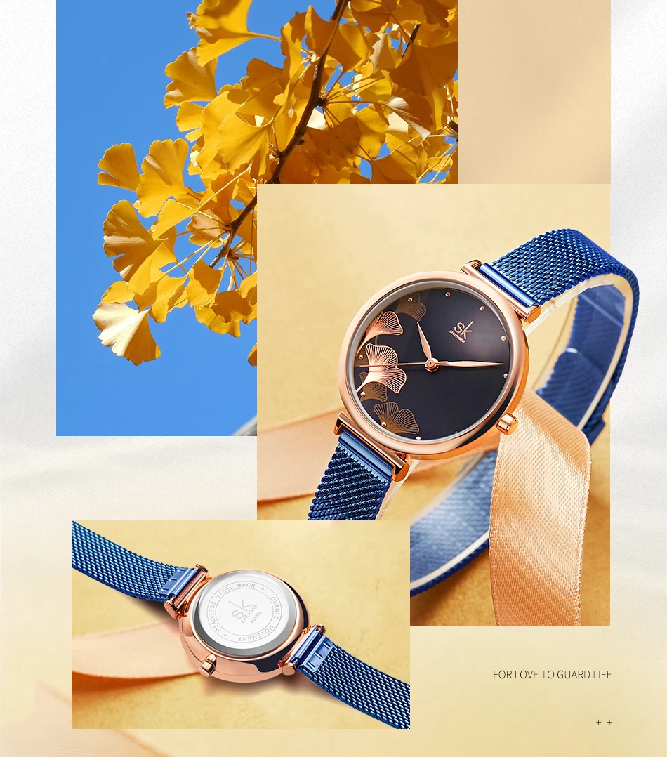 Часы Shengke с рисунком листьев гинкго, женские Роскошные наручные ...