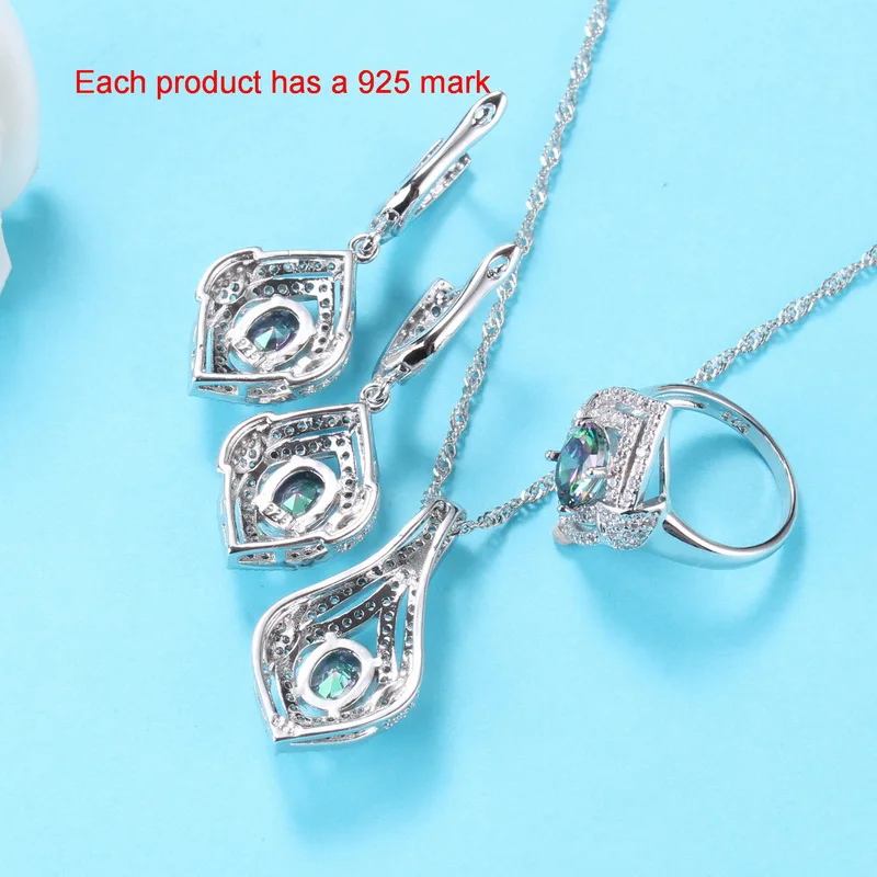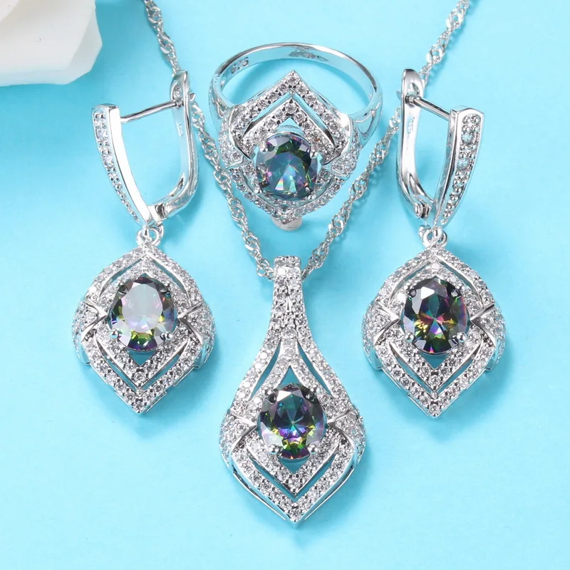 Женский ювелирный комплект из 3 предметов, серебро 925 пробы, 8 цветов
