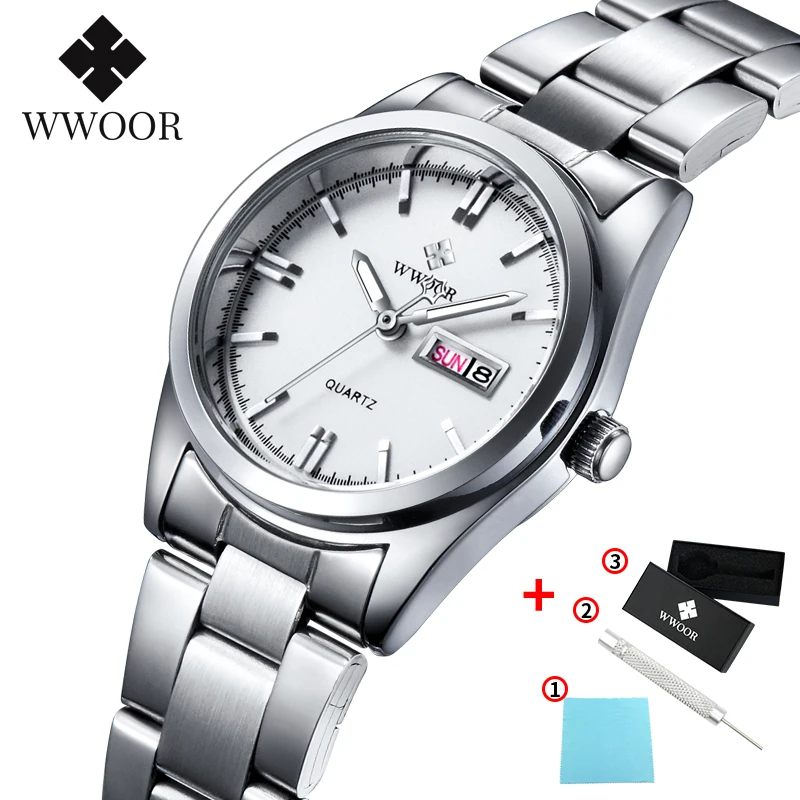 2020 WWOOR брендовые Модные кварцевые женские часы водонепроницаемые Серебристые белые часы с датой женские наручные часы с браслетом женские часы Montre Femme