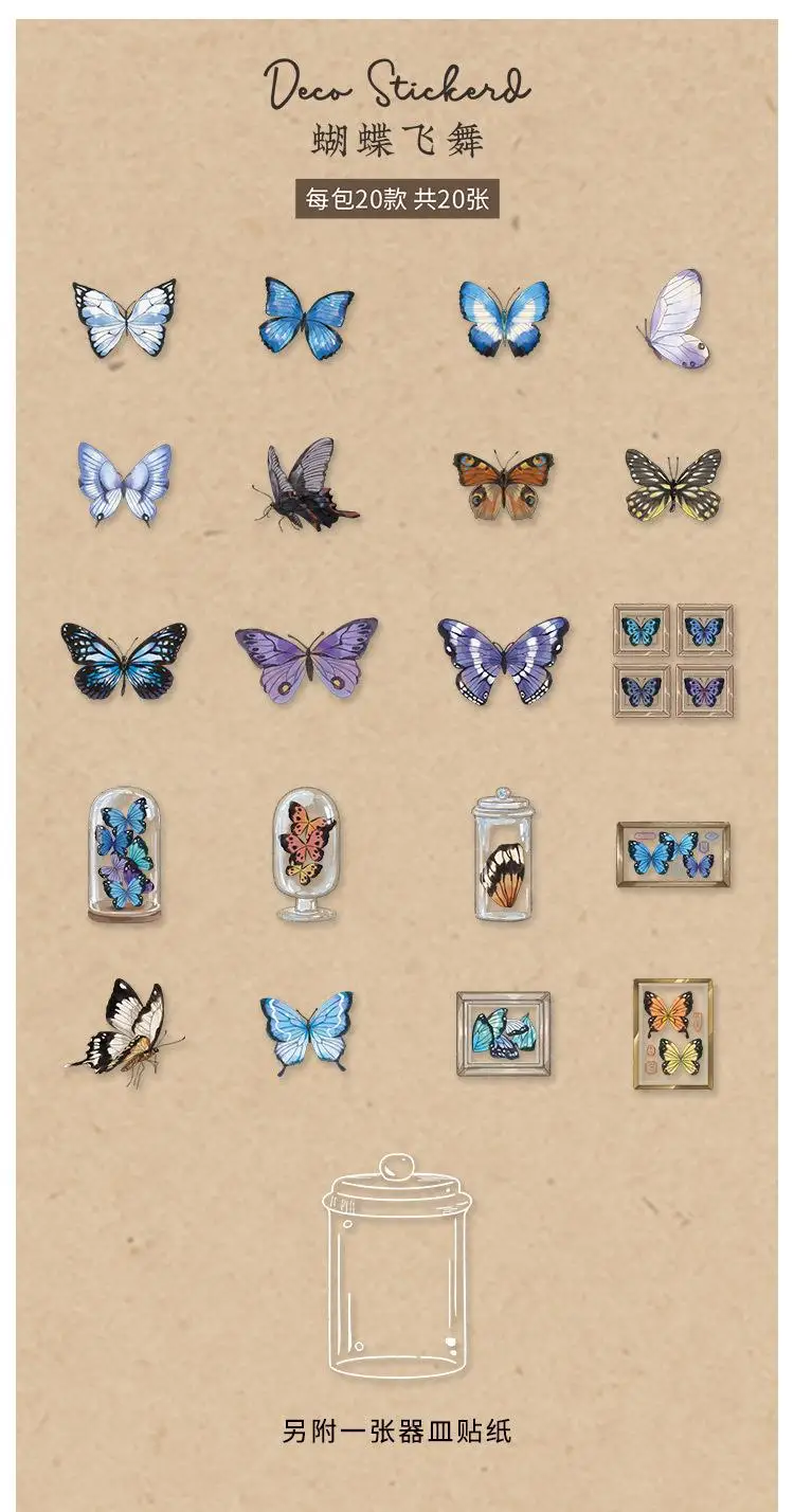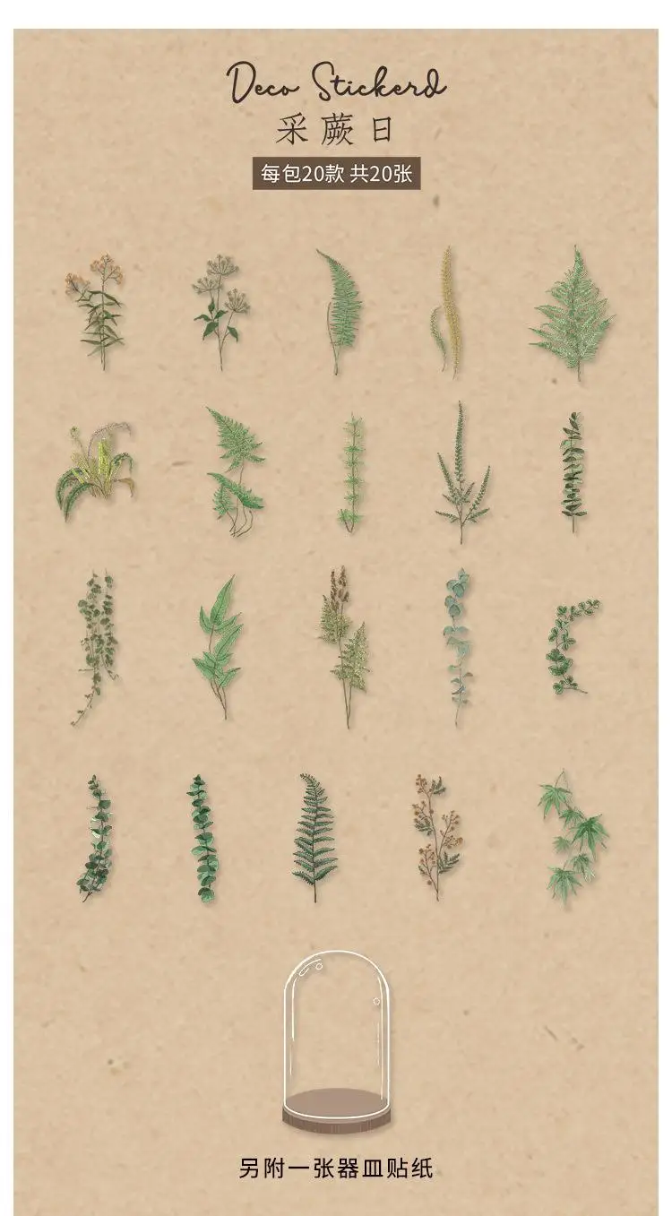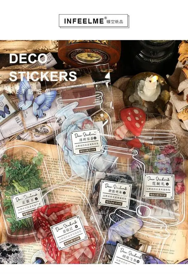 20 шт.лот декоративные наклейки в виде грибов, бабочек, домашних животных, скрапбукинга, прозрачные палочки, наклейки для дневника, канцелярские принадлежности, альбом