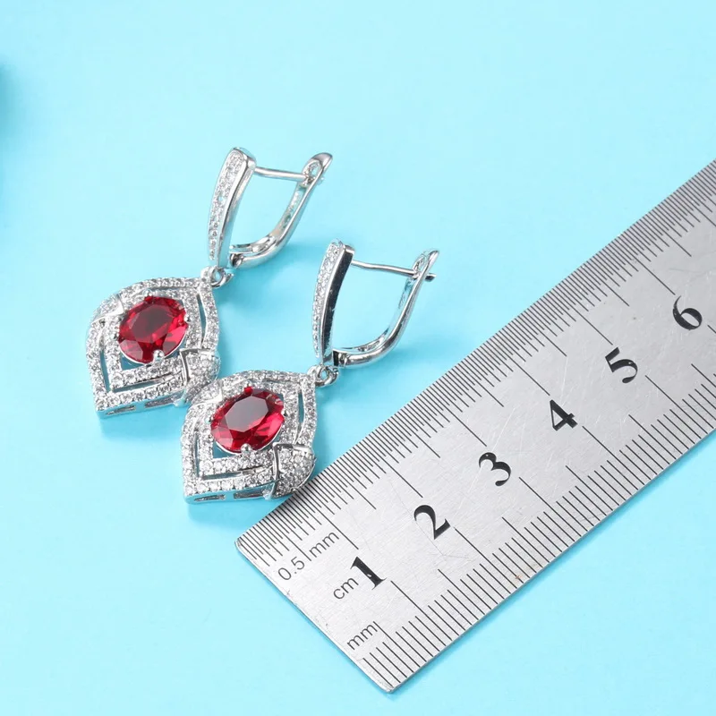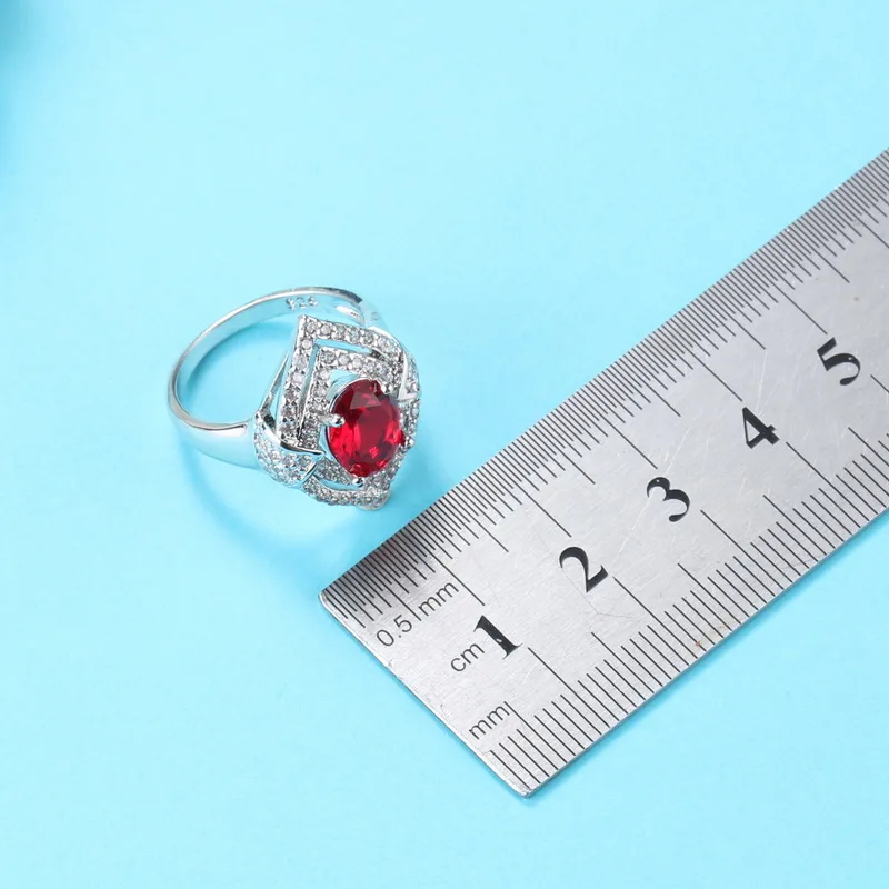 Розовый красный свадебный комплект ювелирных изделий 925 Серебряный...