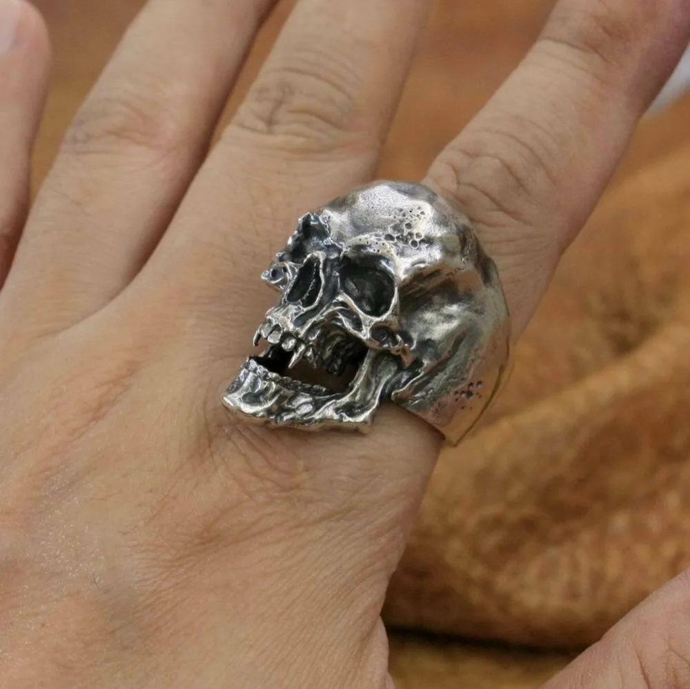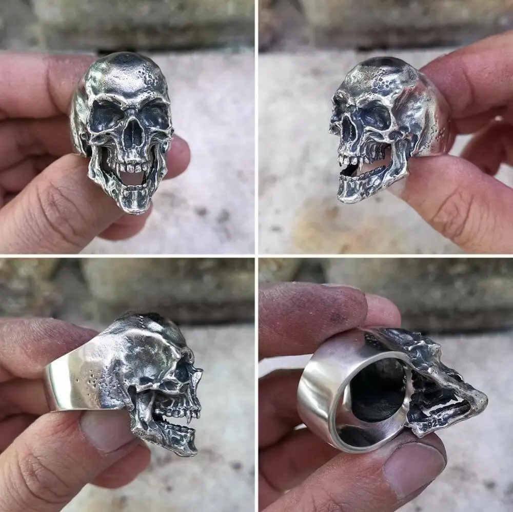 925 пробы Серебряное кольцо с острыми зубами и черепом мужское байкерское панк кольцо TA209 Размер США 7 15