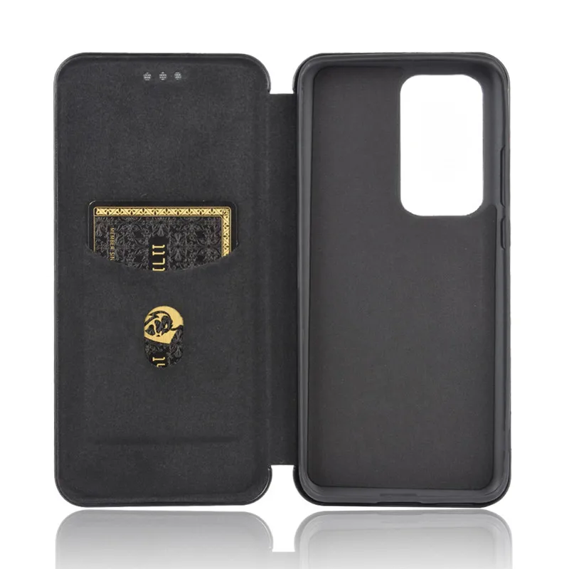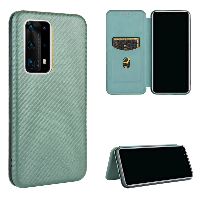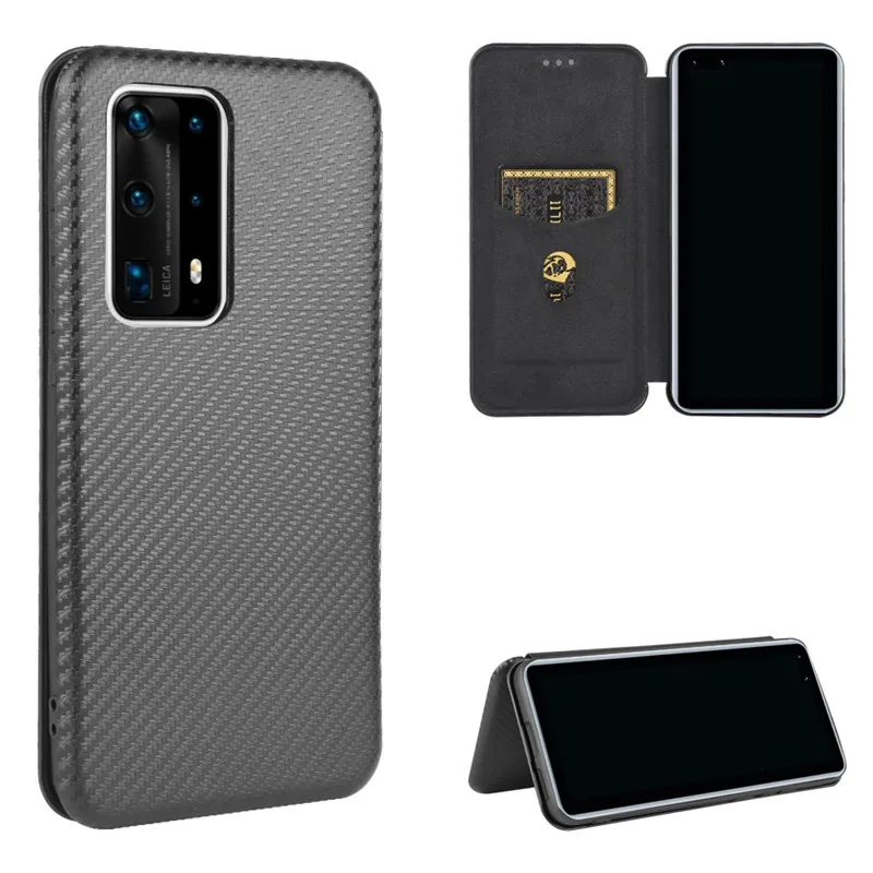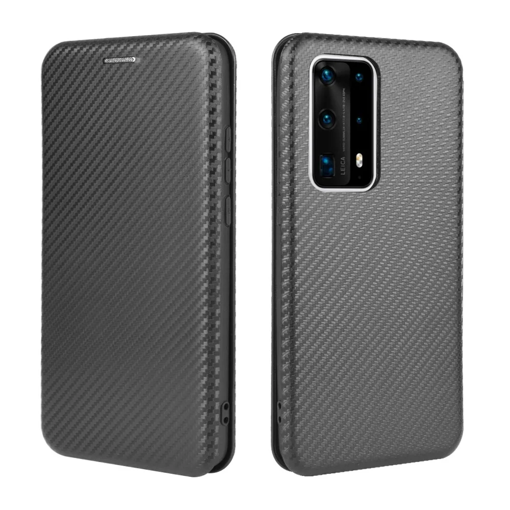 Чехол для Huawei P40 Pro Plus 6,58 дюйма, кожаный флип-чехол из углеродного волокна для Huawei P40 Pro +, Тонкий деловой Магнитный кошелек со слотом для карт