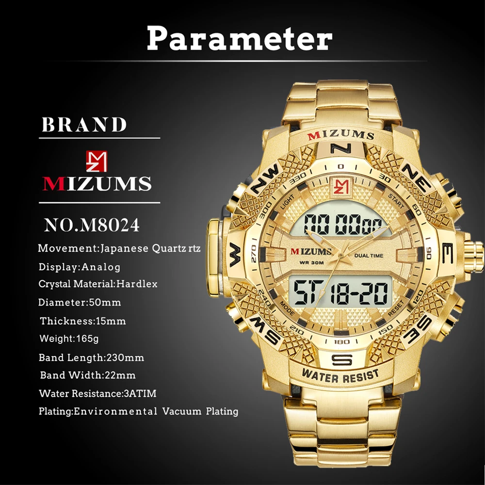Мужские часы 2020, роскошные Брендовые мужские кварцевые наручные часы mizсветs, спортивные мужские наручные часы, золотые водонепроницаемые мужские часы с браслетом из нержавеющей стали XFCS