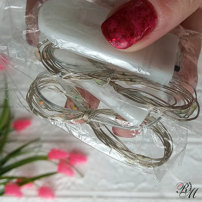 Месяц через Латвию. Гирлянда в пакетике, общая длина 1 м, светодиоды-капельки расположены на 10см друг от друга на тонкой проволоке. Основание в прозрачной силиконовой оплетке, которая ведёт к отсеку для батареек (не в комплекте). Батарейки нужны CR2032, вставлять их разными полюсами. Светит очень красиво и ярко даже днём. Светодиоды не мигают, просто горят. Теплового излучения нет, не нагреется, можно использовать в различных инсталляциях. Планирую делать ёлочку с ней. Ещё обзоры на ЮТуб, ник Mila Rukkos, плейлист AliExpress.Обзор покупок - товары для дома, маникюр, техника и пр. Скоро будут новые обзоры, как время появится.