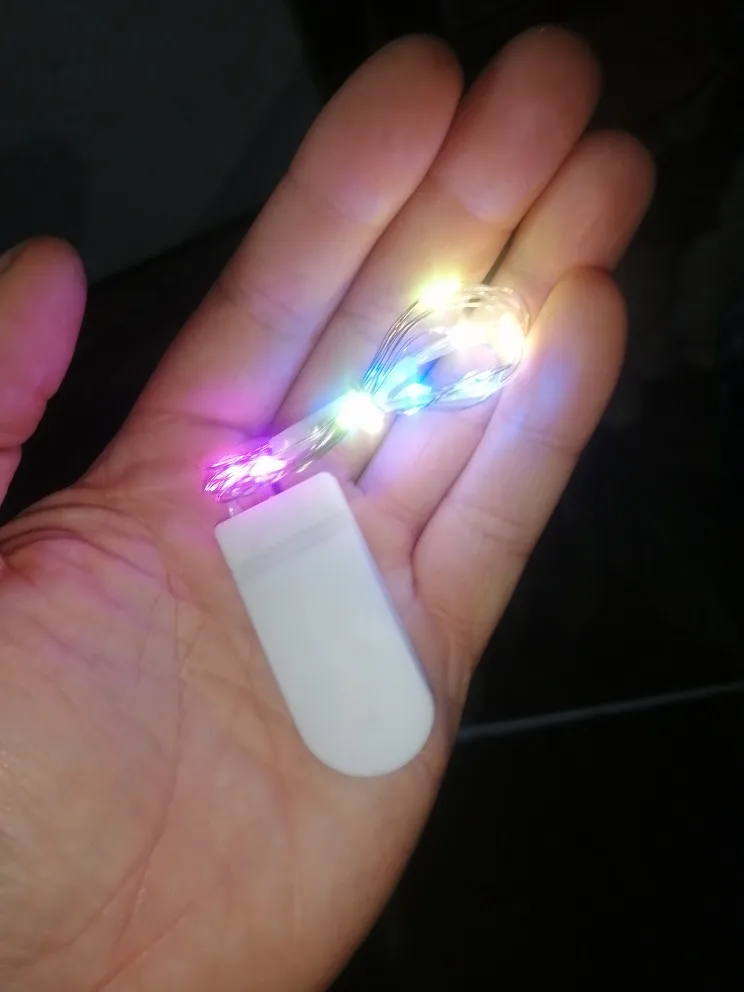 Продавец прислал с хорошей скидкой по купону. В комплекте нет батареек CR2032, у меня были в наличие. "Полезная", рабочая длинна 90 см. примерно. В целом хорошо, что нибудь украсить на НГ, или сделать оригинальный подарок, самое то.