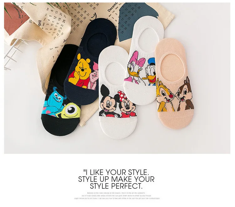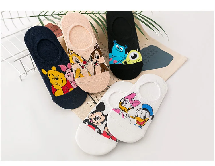 Disney, 1 пара, носки-башмачки для девочек в сезон весна-лето новый японский мультфильм аниме незаметные женские носки силиконовый нескользящий, раздел-детские носки