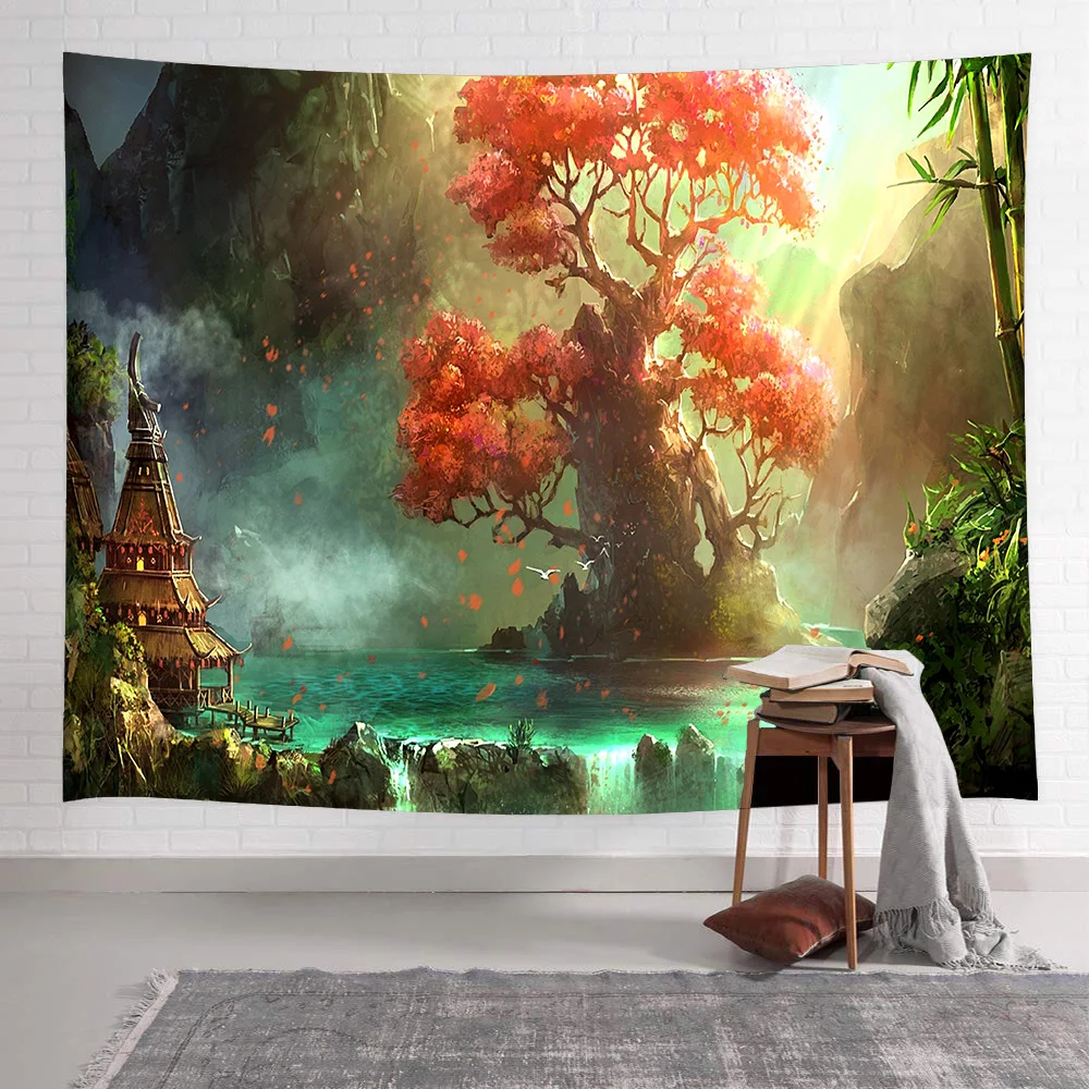 Симсант гриб лес замок психоделическая фотография Сказочный Триппи красочная бабочка Настенный подвесной гобелен домашний декор