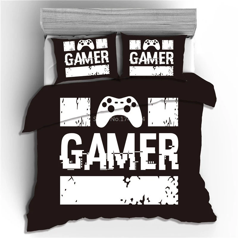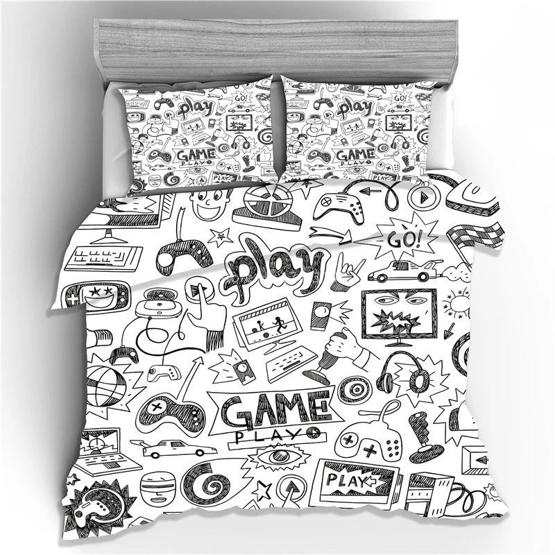 Комплект постельного белья для игровых игр, белый и черный, с мультяшным принтом