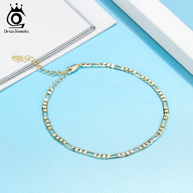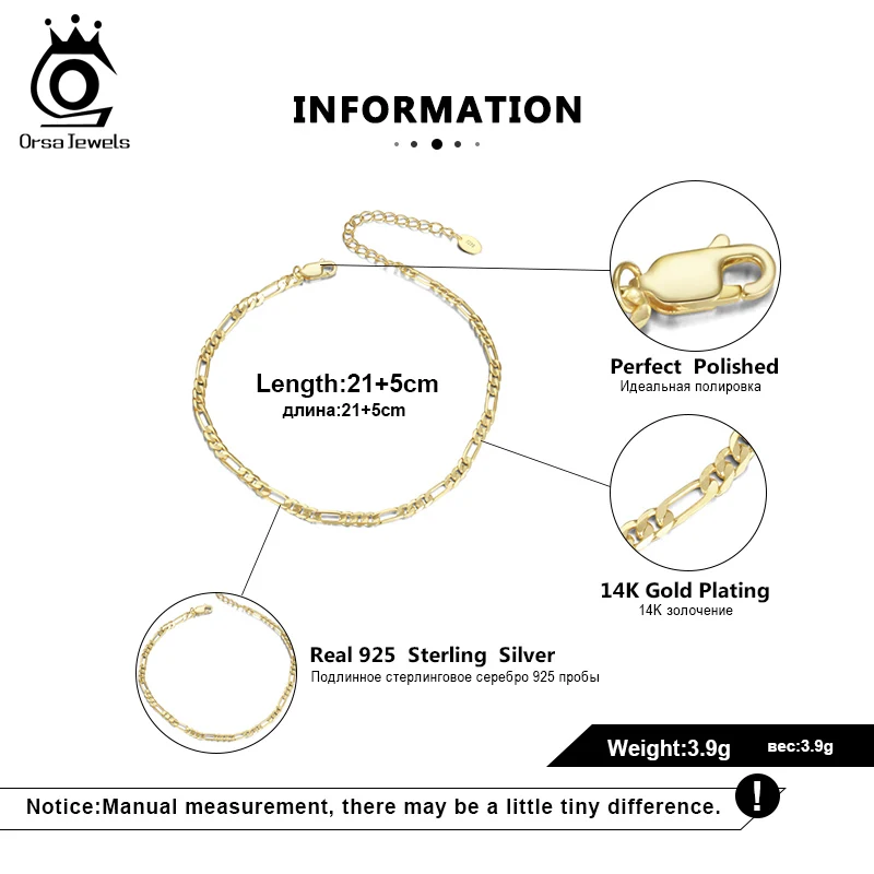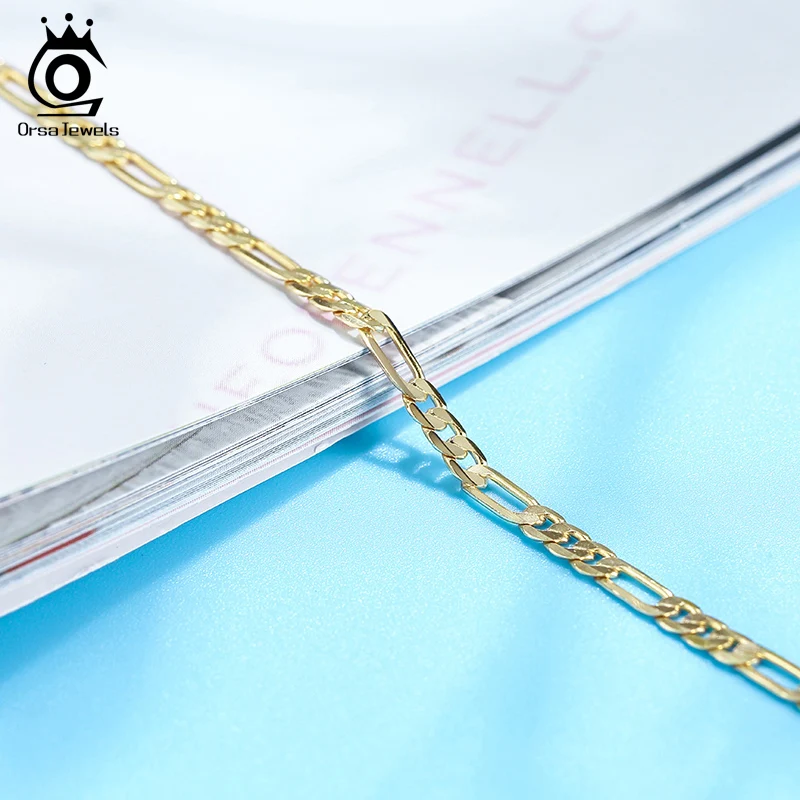 Цепочка ORSA JEWELS из чистого серебра 925 пробы, позолоченная 14 карат, 21 + 5 см, из серебра цепочки с орнаментом пробы, SA07