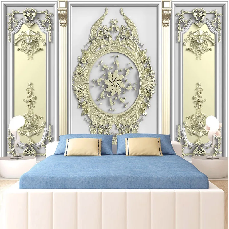 Пользовательские фотообои 3D стерео Золотой рельеф резная римская колонна роспись гостиная телевизор Роскошная Наклейка на стену водостойкие обои