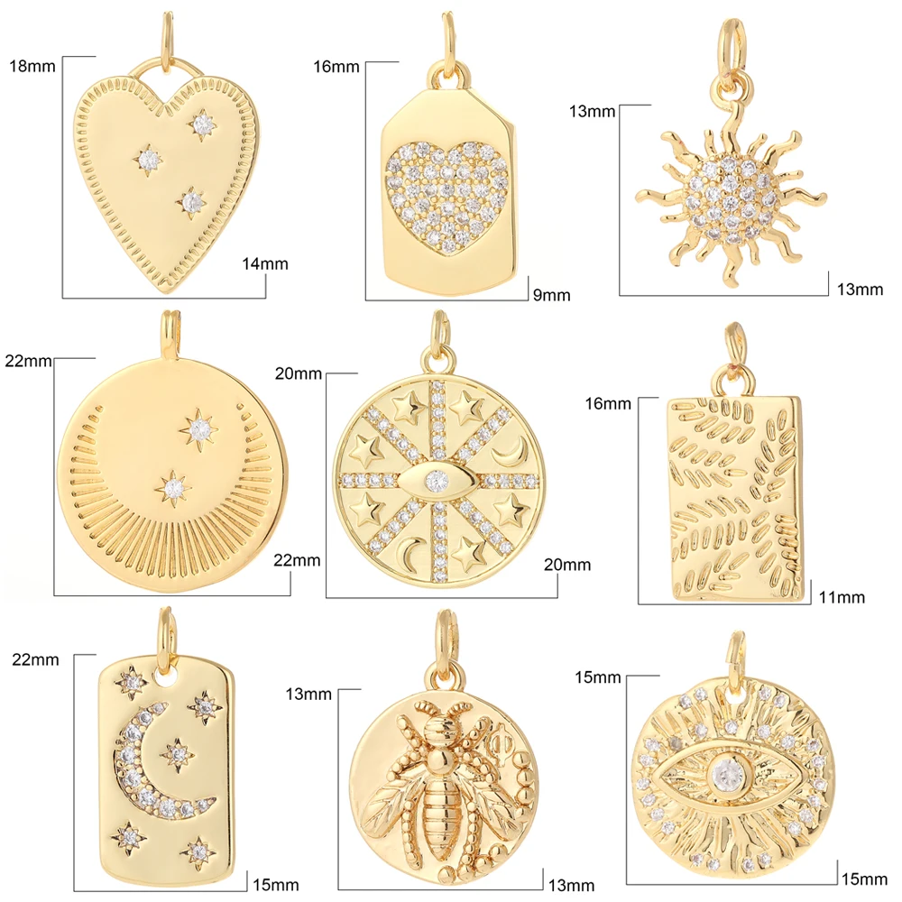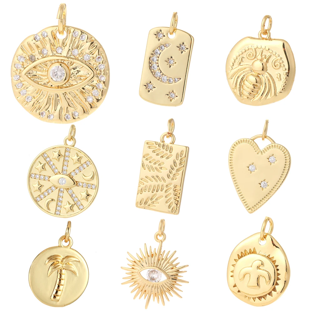 Очаровательные шармы для изготовления ювелирных изделий, золотая пыль, луна, звезда, дерево, глаза, сделай сам, серьги, ожерелье, металлические Медные CZ циркониевые аксессуары