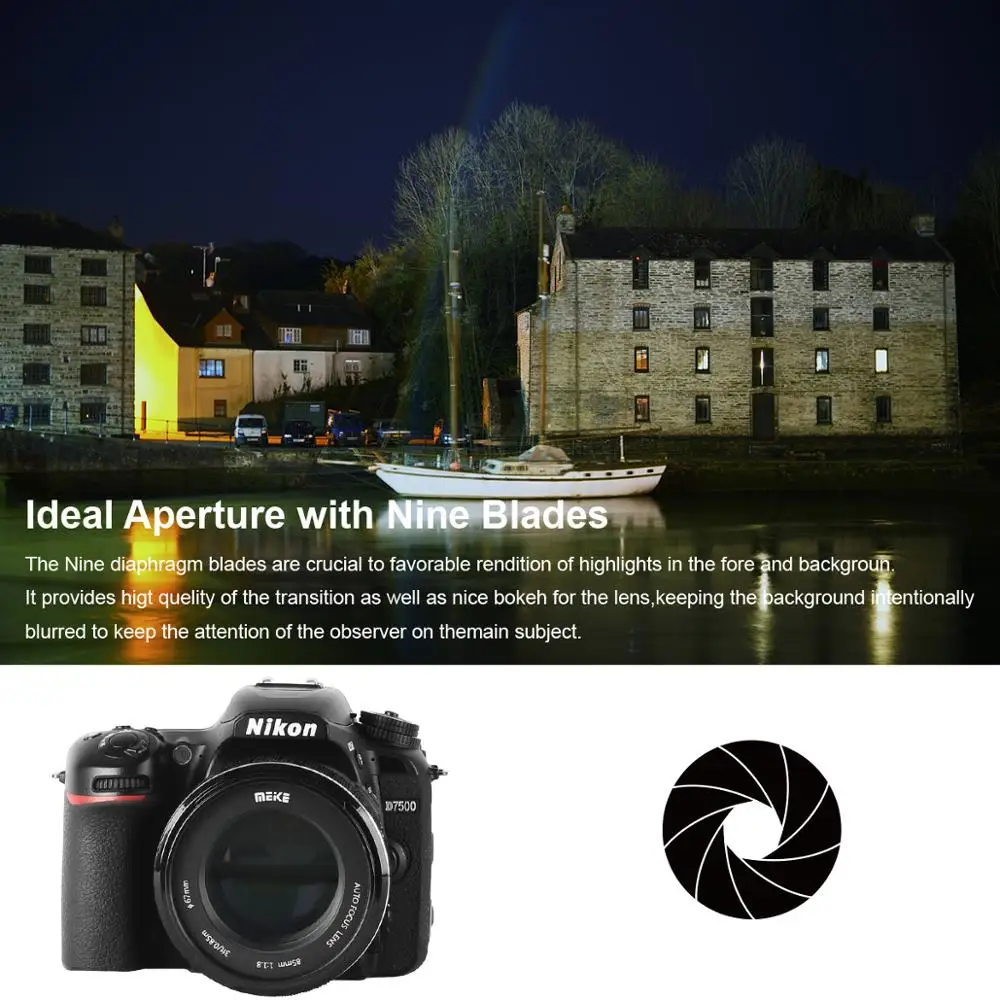 Ширококадровый портретный объектив Meike 85 мм F1.8 с автофокусом для зеркальных камер Nikon D500, D610, D750, D780, D800, D810, D850, D3400, D3500