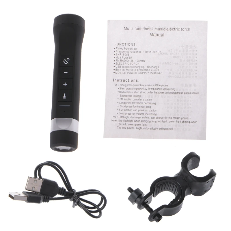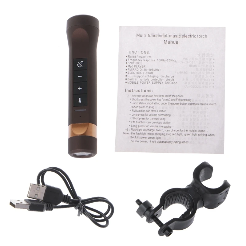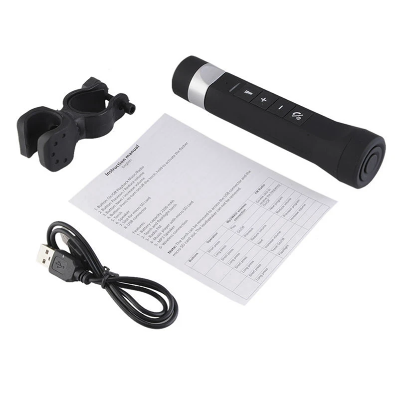 Особенности:100% Абсолютно новый и высококачественный.Портативный дизайн, компактный корпус, водонепроницаемый.Поддерживает подсветку велосипеда, зарядку мобильных телефонов, воспроизведение музыки и т. д.MP3-плеер, поддержка воспроизведения/паузы, функция переключения режимов.Поддерживает TF-карту, FM-радио.Функция памяти точки останова.1 Вт фонарик освещение поддерживает международный сигнал бедствия Сос.Поддержка функции зарядки mobile power Мобильный телефон.Встроенный перезаряжаемый литиевый аккумулятор 18650, 1200 мАч.Встроенная интеллектуальная схема защиты от заряда и разряда.Широко используется для обучения, отдыха, дома и т. д. велосипедов на открытом воздухе или повседневного использования.Портативные колонки bluetooth.