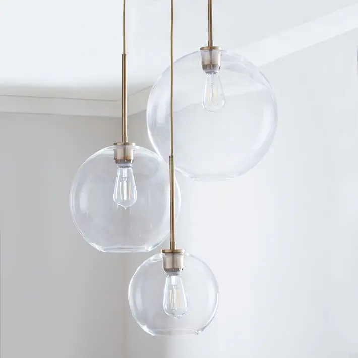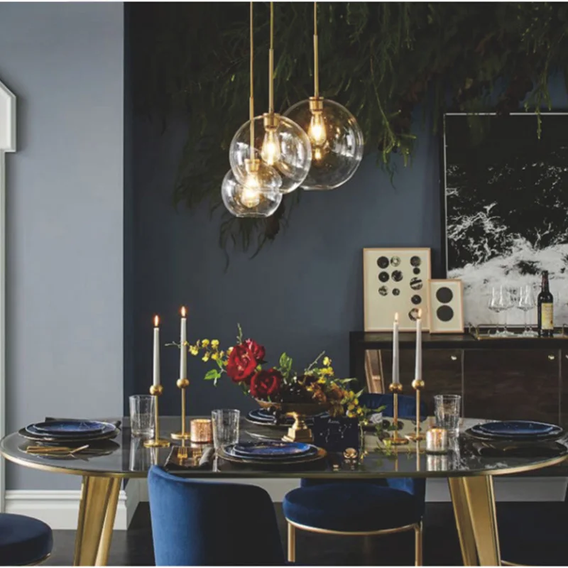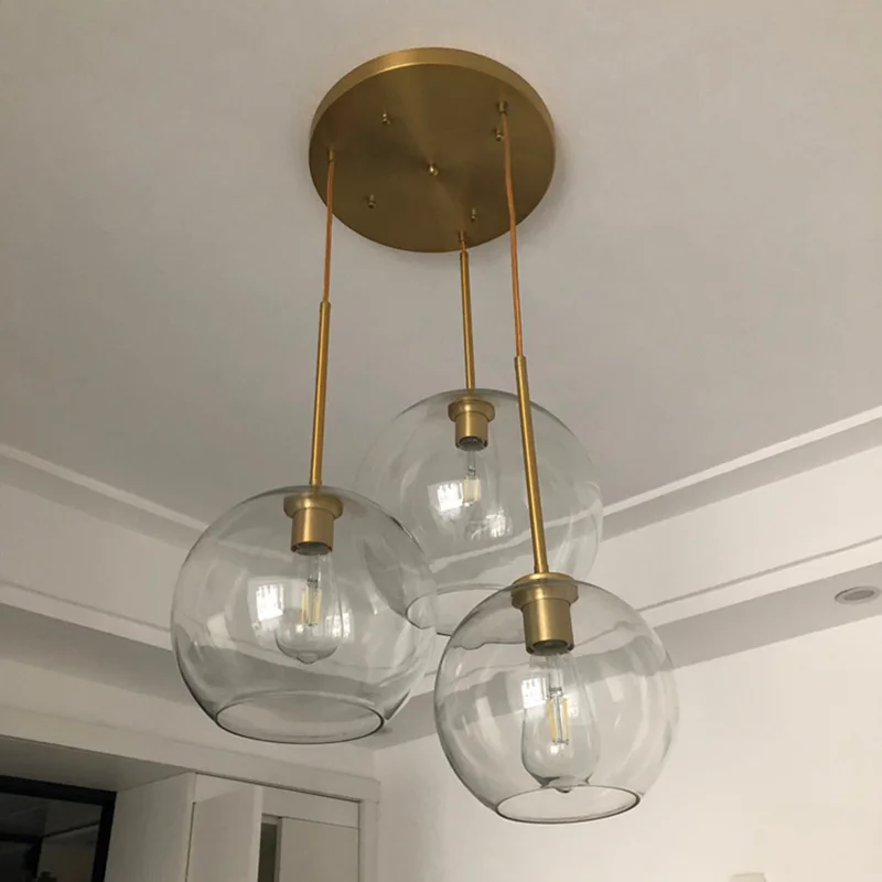 Современный подвесной светильник в стиле лофт, набор из 3 предметов, серебристая, золотистая стеклянная лампа в форме шара, осветительный прибор для столовой, гостиной