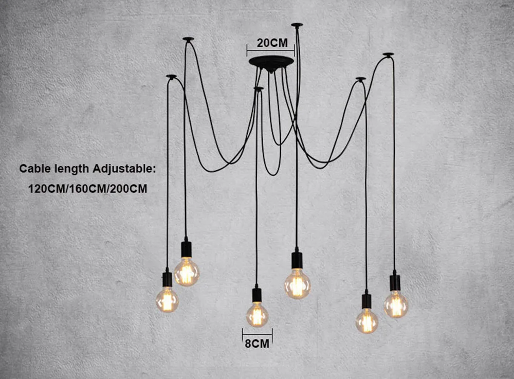 Скандинавский паук промышленный подвесной светильник E27 Лофт Эдисон промышленные подвесные лампы Длина 120 см 150 см 200 см подвесные светильники