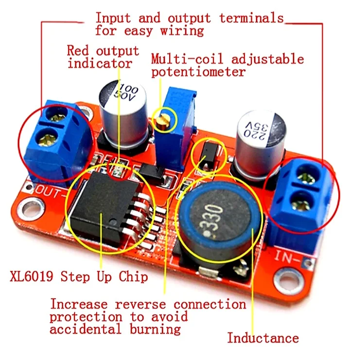 Новый 5A DC-DC повышающий силовой модуль Boost преобразователь напряжения 3,3-35 В до 5 В 6 в 9 в 12 В 24 В