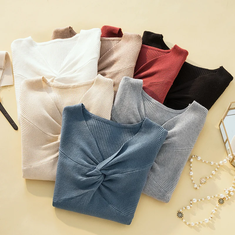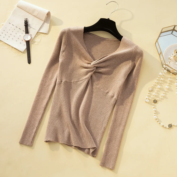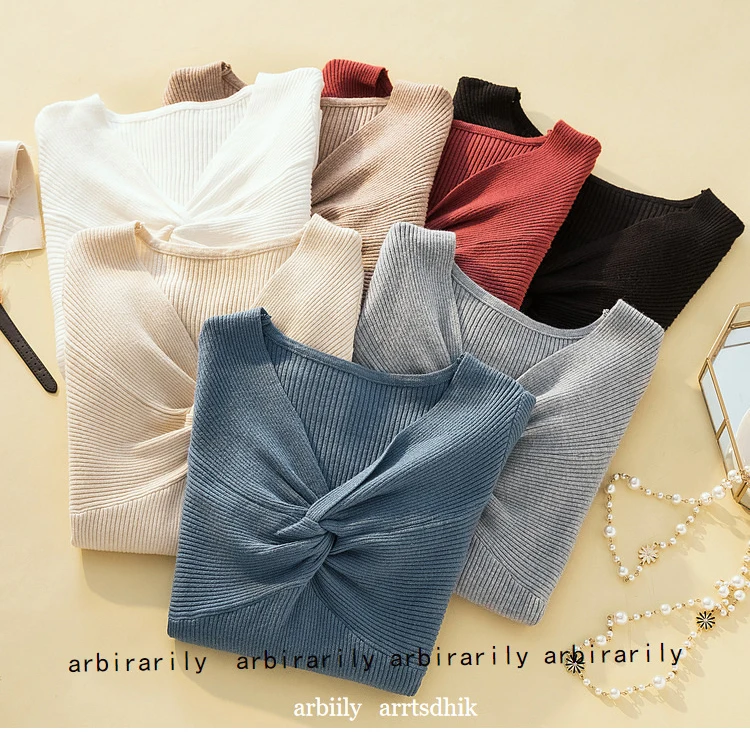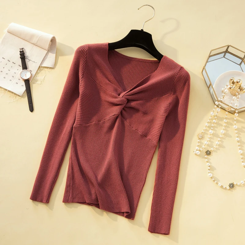 AOSSVIAO 2021 вязаный пуловер Топ Модный осенне-зимний свитер женский шикарный розовый сексуальный вязаный тонкий джемпер с v-образным вырезом pull femme