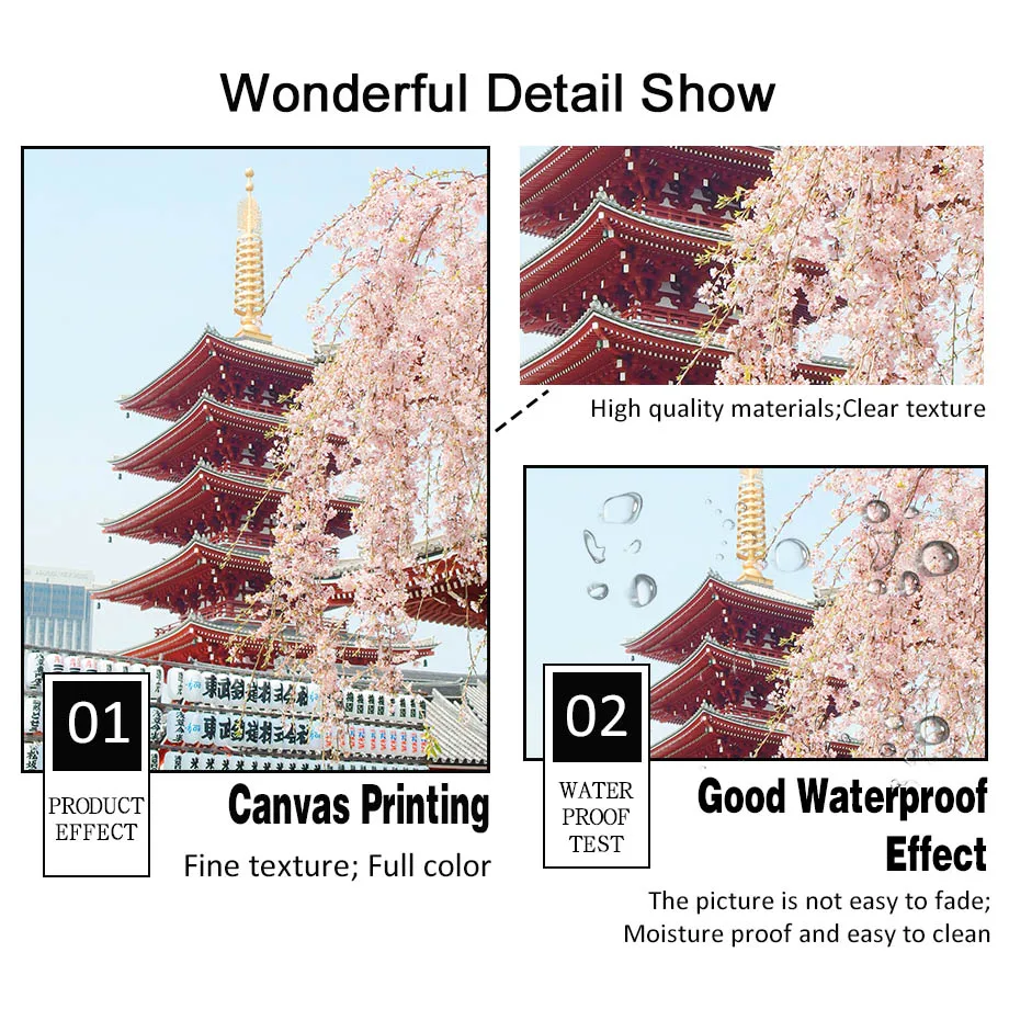 Розовая вьетнамская пагода здания Janpa настенная Картина на холсте...