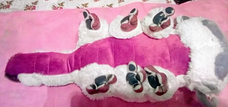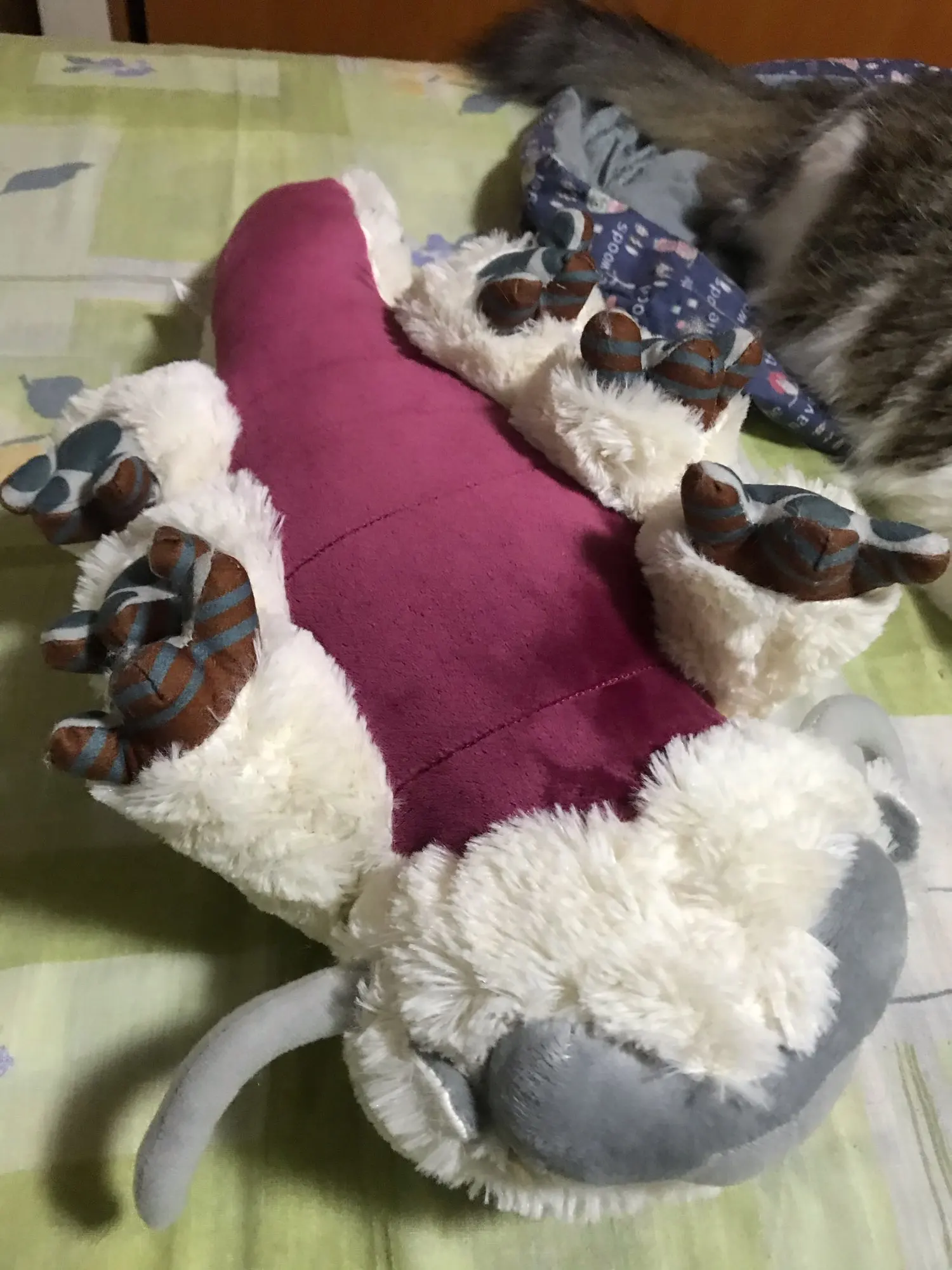 Милый и пушистый. Один комментарий для людей, заказывающих эту игрушку для своих детей: в набитом животе было два небольших куска пластика (не из упаковки). Я смог их удалить. Проверьте пластику перед тем, как дать его ребенку.