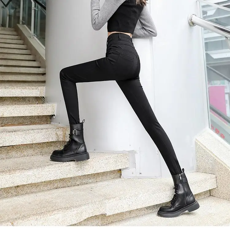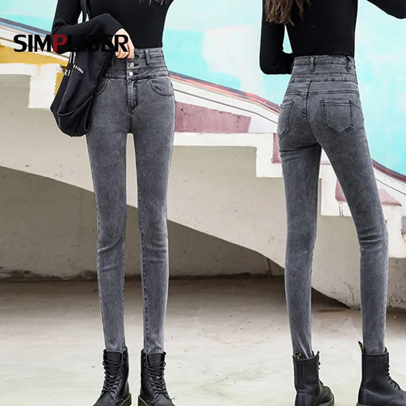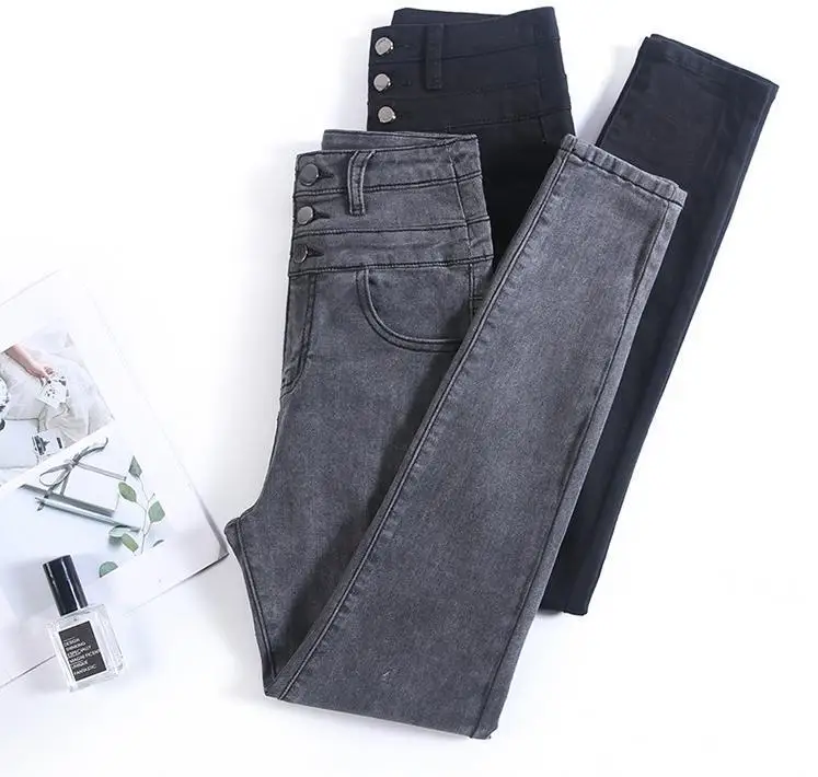 Женские джинсы с высокой талией, джинсы с эффектом пуш-ап, узкие брюки размера плюс 32 Femme, джинсовые черные серые джинсы, женские брюки с высокой посадкой