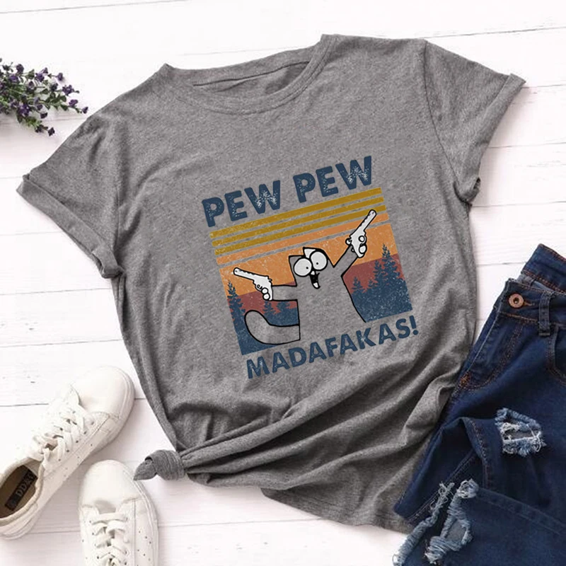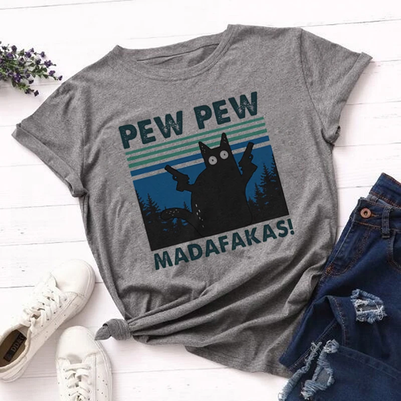Футболка Pew Madafakas женская с мультяшным принтом, милый футболки с коротким рукавом Топ, уличная одежда, 4XL, на лето