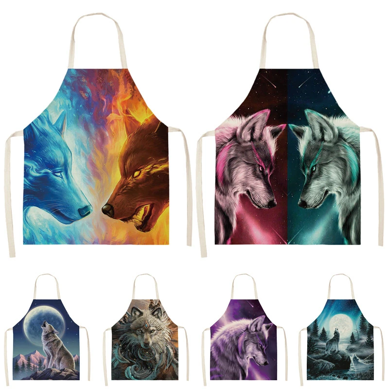 Фартуки для дома и кухни с рисунком в виде ночи волка, поварская одежда хлопчатобумажные нагрудники для взрослых, 53*65 см, 1 шт., WQ0177