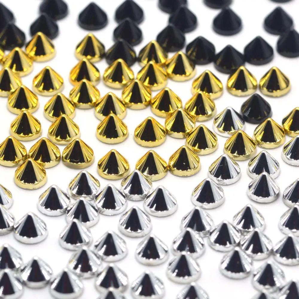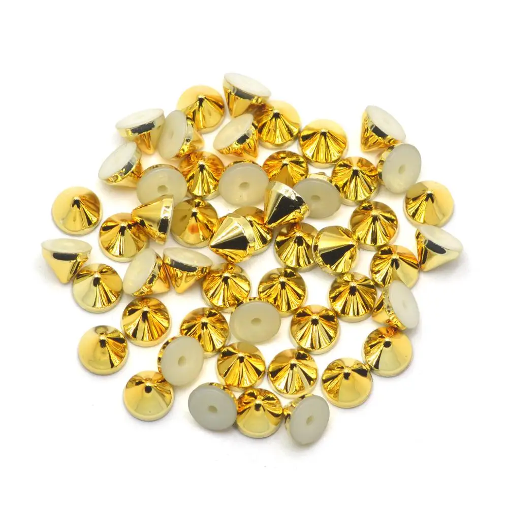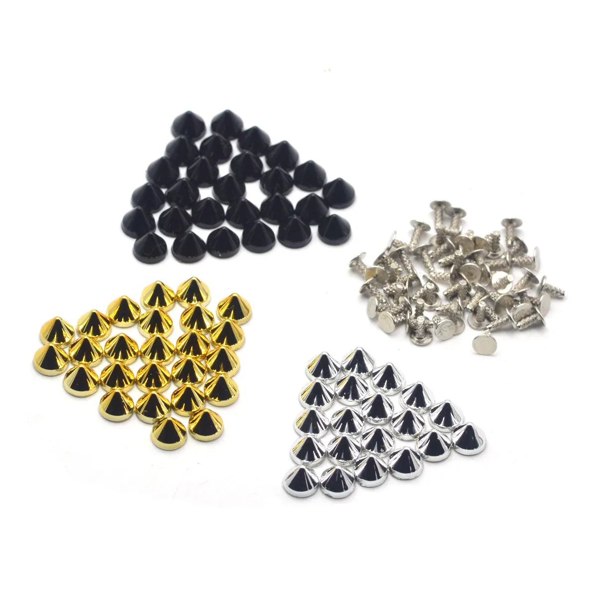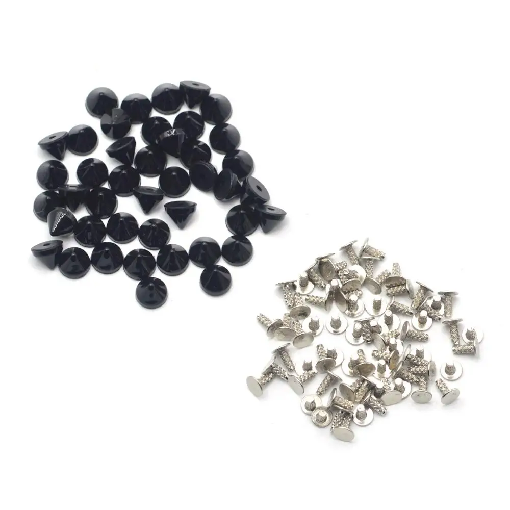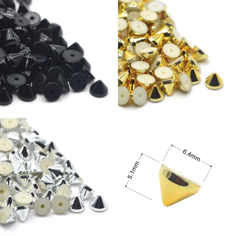 100 комплектов посеребренные позолоченные черные акриловые конусные панк-шпильки с заклепками, шипы для обуви, сумки, украшения одежды, 6.4x5.1mm