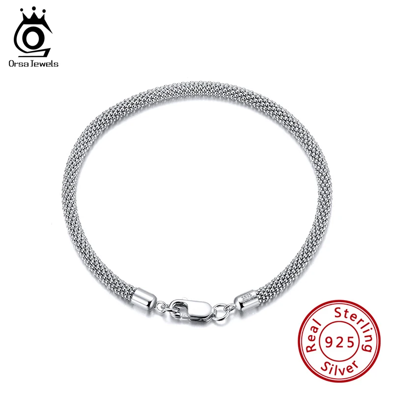 ORSA JEWELS итальянский 925 пробы Серебряный 3,0 мм сетчатый Браслет-цепочка изящный браслет высокого качества SB65