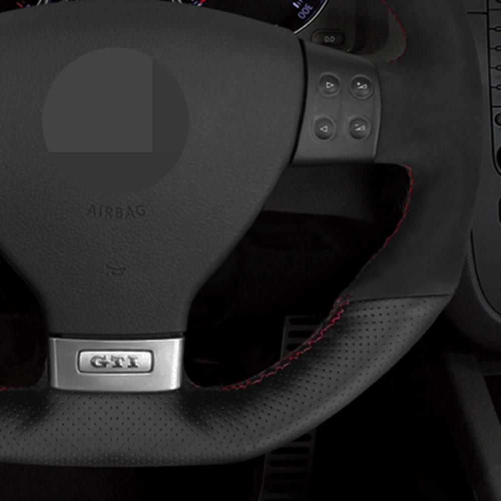 Чехол рулевого колеса автомобиля ручной работы черная замша из натуральной кожи для Volkswagen Golf 5 Mk5 GTI VW Golf 5 R32 Passat R GT 2005