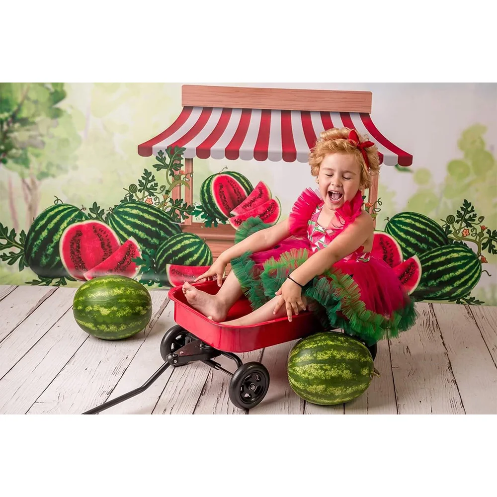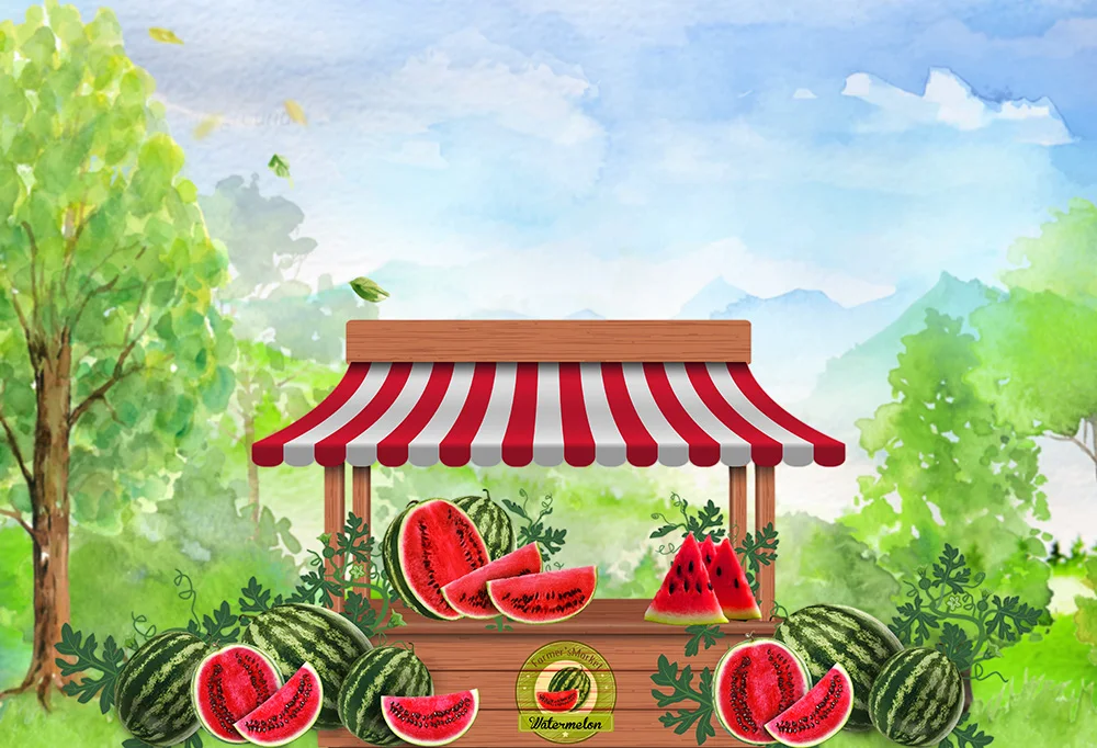 Фон для фотосъемки с изображением арбуза, фермера, летнего рынка
