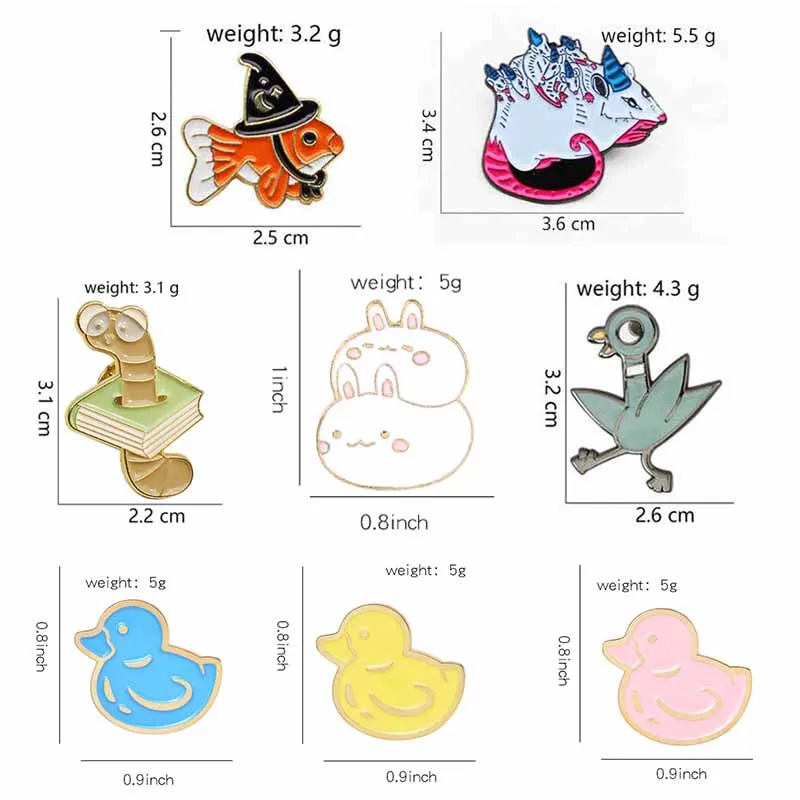 Эмалированные булавки в виде животных, золотая рыбка, мышь, крыса, ...