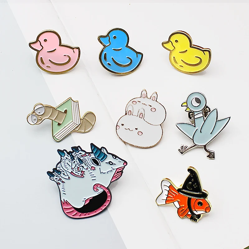 Металлические эмалированные заколки в виде животных, утка в виде кролика и рыбы, Женская мышь, заколка на лацкан, рюкзак, значок на заказ