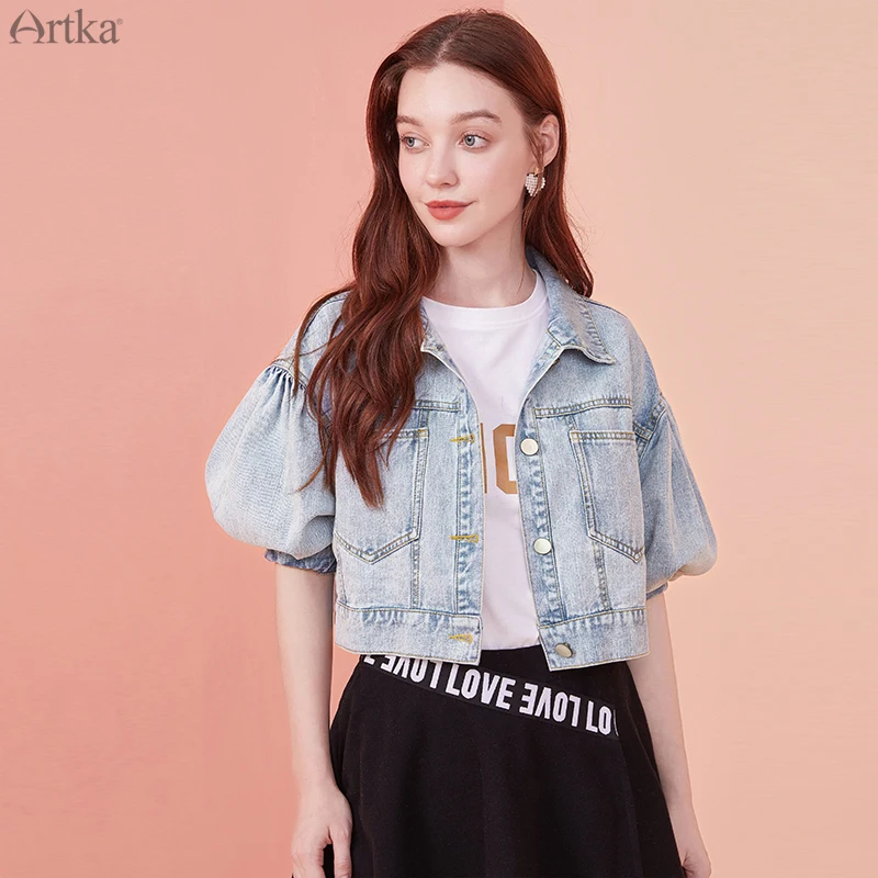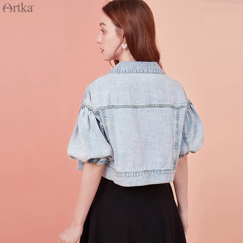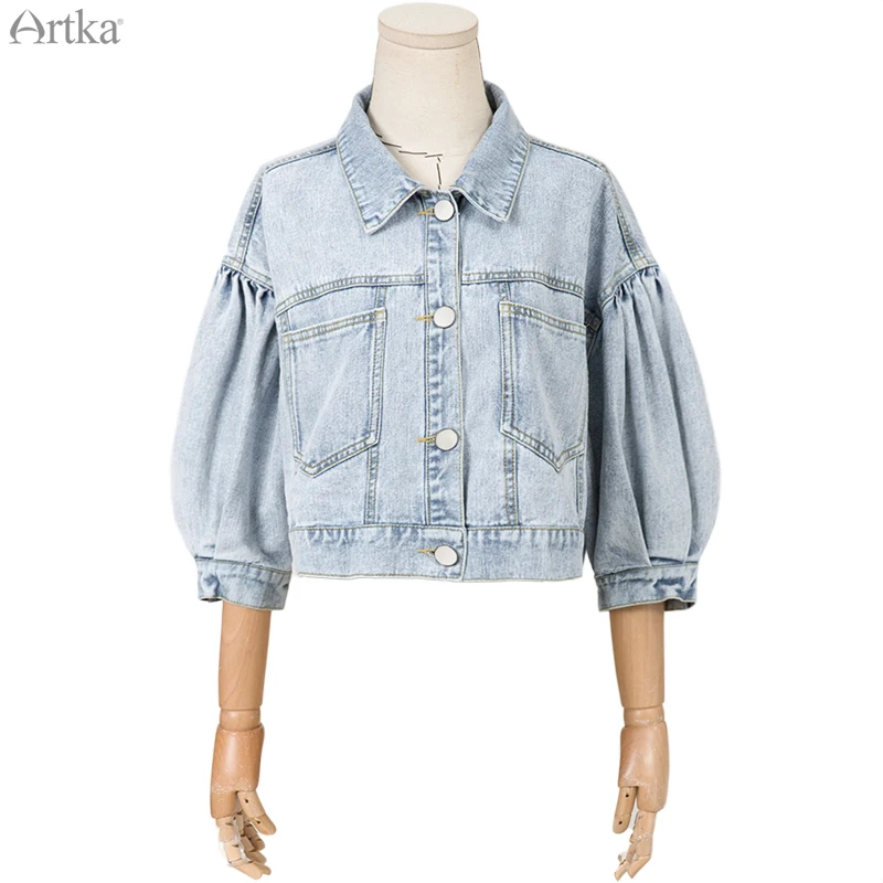 Женская джинсовая куртка ARTKA, Повседневная Свободная короткая винтажная куртка из денима с пышными рукавами, WN25003Q, на раннюю осень 2020