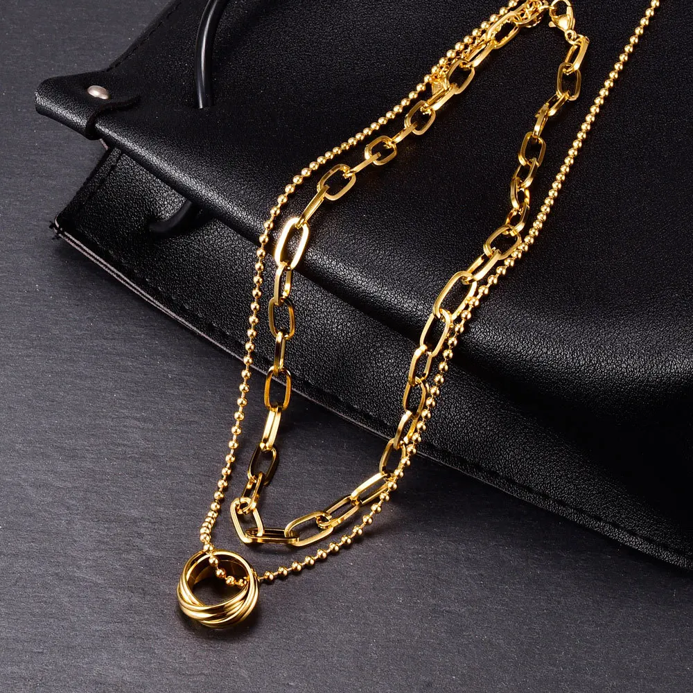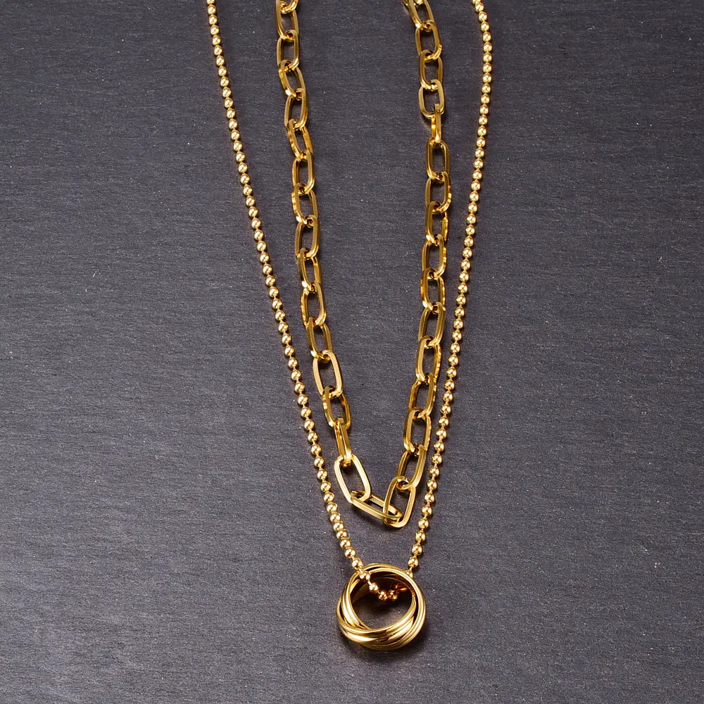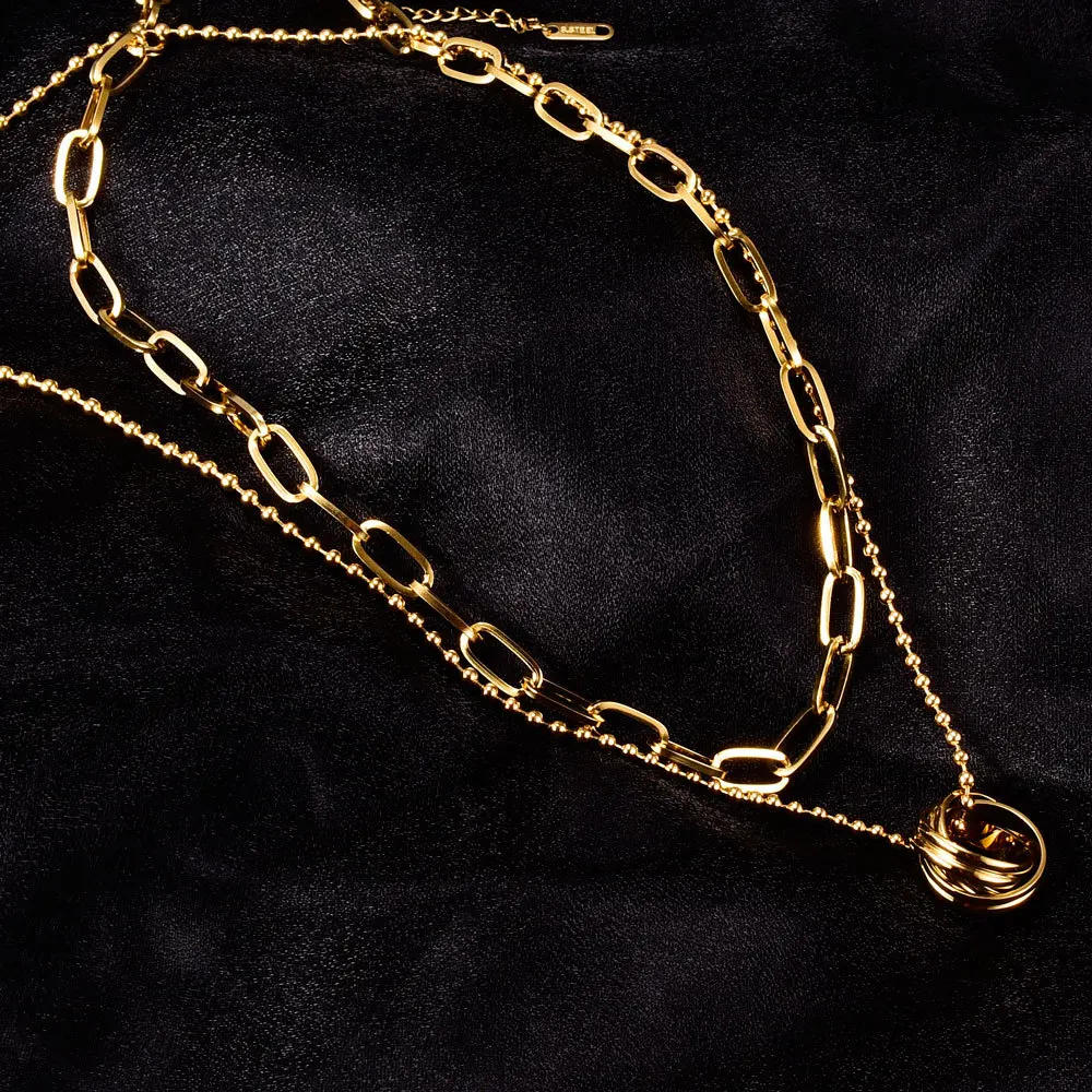 Amaiyllis 18k золото двойной слой ключицы ожерелье с подвесками на цепочке цепочка с золотыми бусинами ожерелье с кулоном для женщин ювелирные изделия