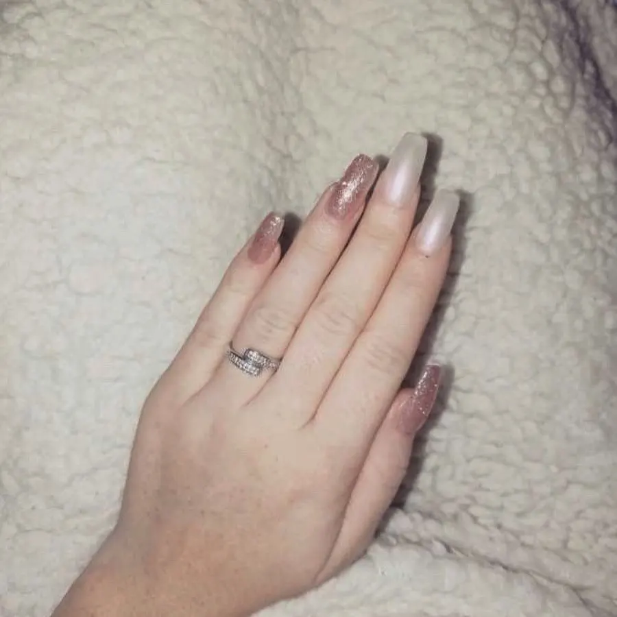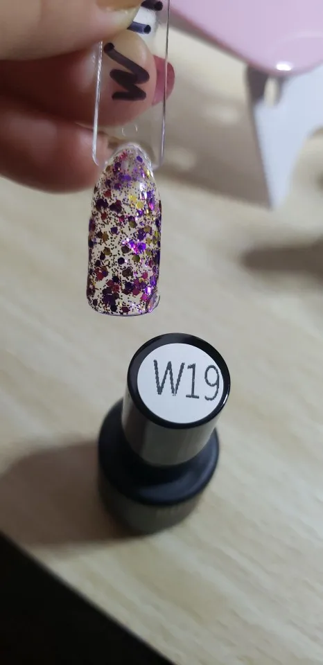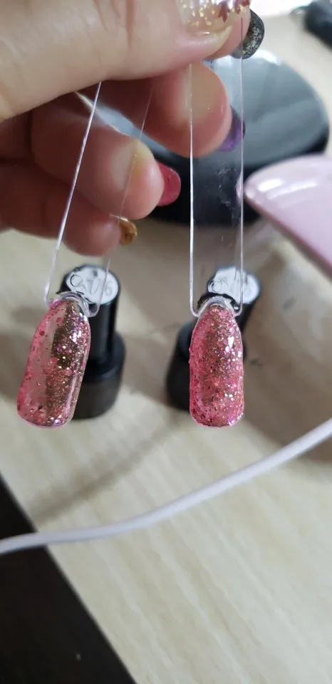 Розовый лак для ногтей с блестками, но это бесцветный лак для ногтей с блестками.