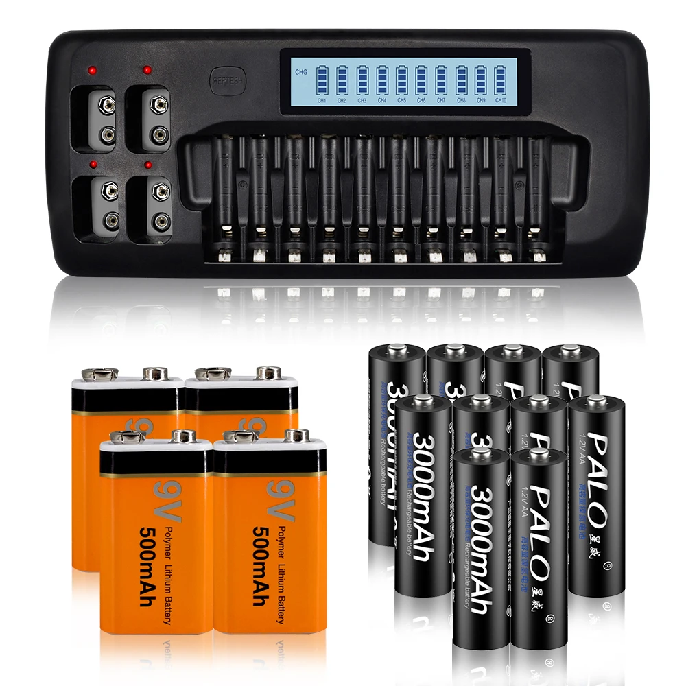 Зарядное устройство для 1,2 В NiMH aa AAA аккумуляторная батарея 9 в nimh литиевая батарея с 10 шт. AA батарея и 4 шт. 9В батарея
