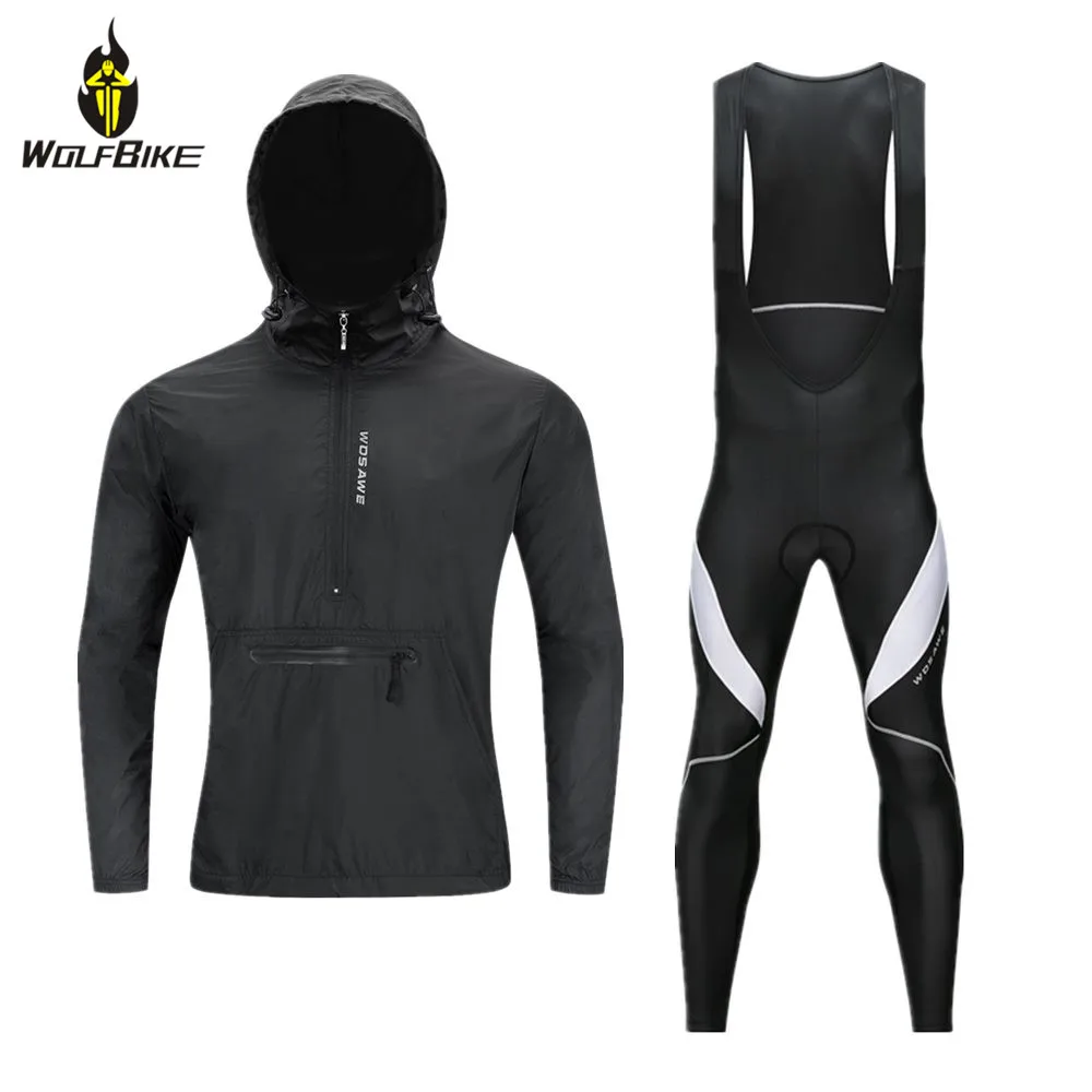WOSAWE ветрозащитный велосипедный костюм с капюшоном, комплект нижнего белья с гелевыми подушечками для горного велосипеда, мужской комплект из джерси и облегающих брюк