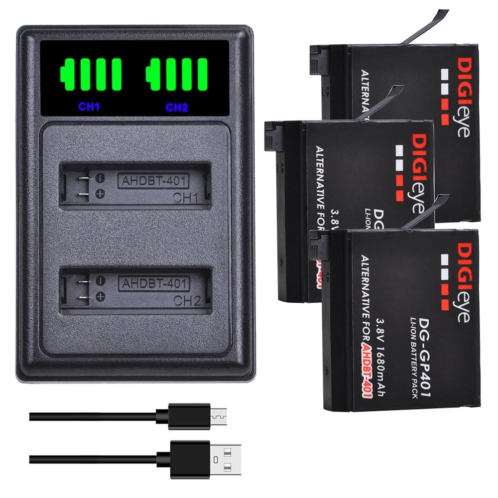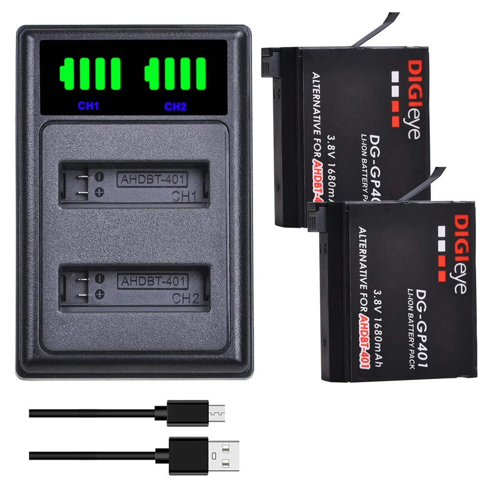 Аккумуляторная батарея 1680 мА ч + двойное зарядное устройство со светодиодной подсветкой для батарей Gopro Hero 4, Gopro Hero 4, серебристый, Hero 4 Black